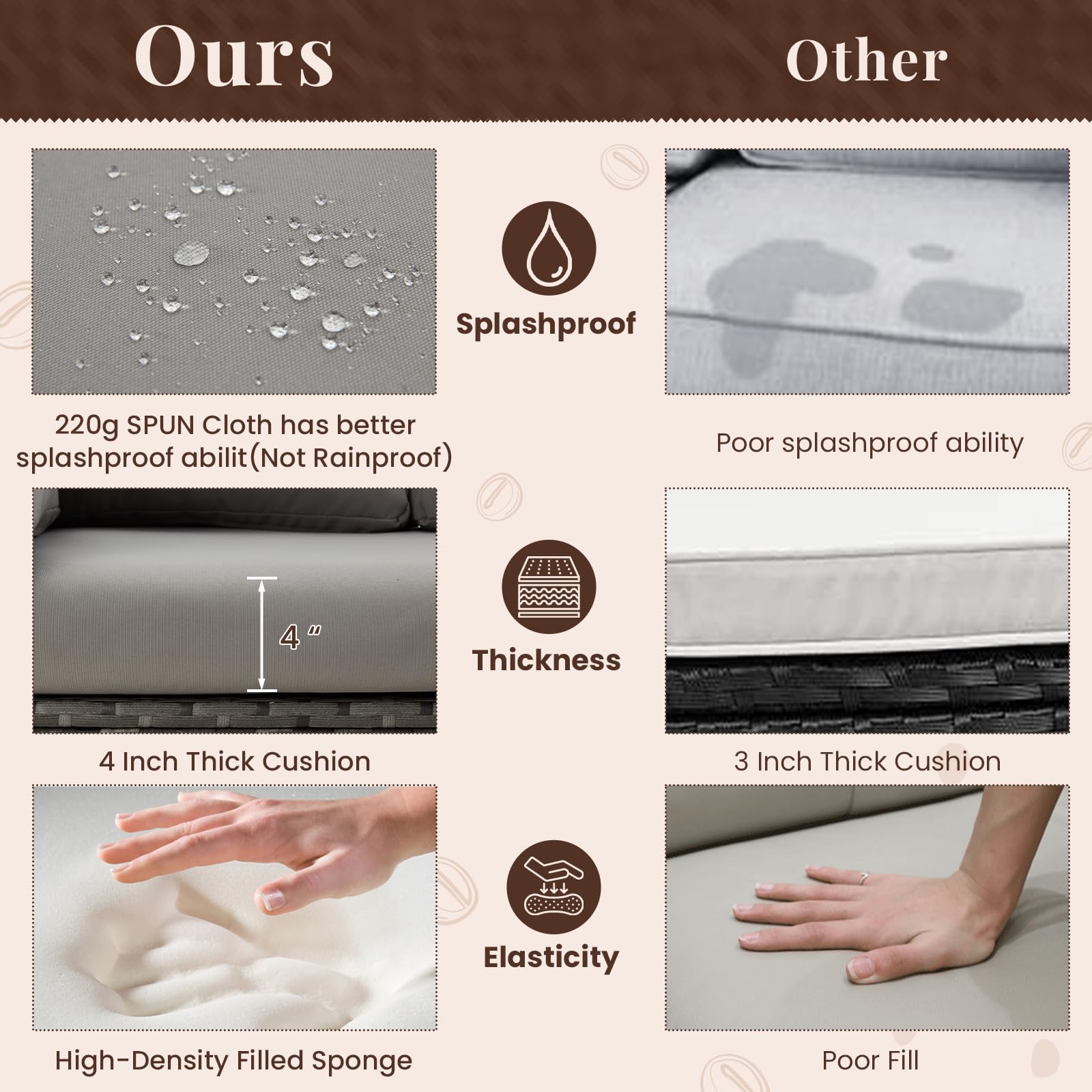 - 【Comfortable Cushions】The U-MAX patio sofa cushion is upholstered with sponge and polypropylene cotton, thick and soft, adding extra comfort. All cushion covers are PA coated that will last for a longer time. 250 g/m polyester yarn-dyed fabric manages to resist fade in long-time sunshine conditions(Please don't expose the item into the rain).