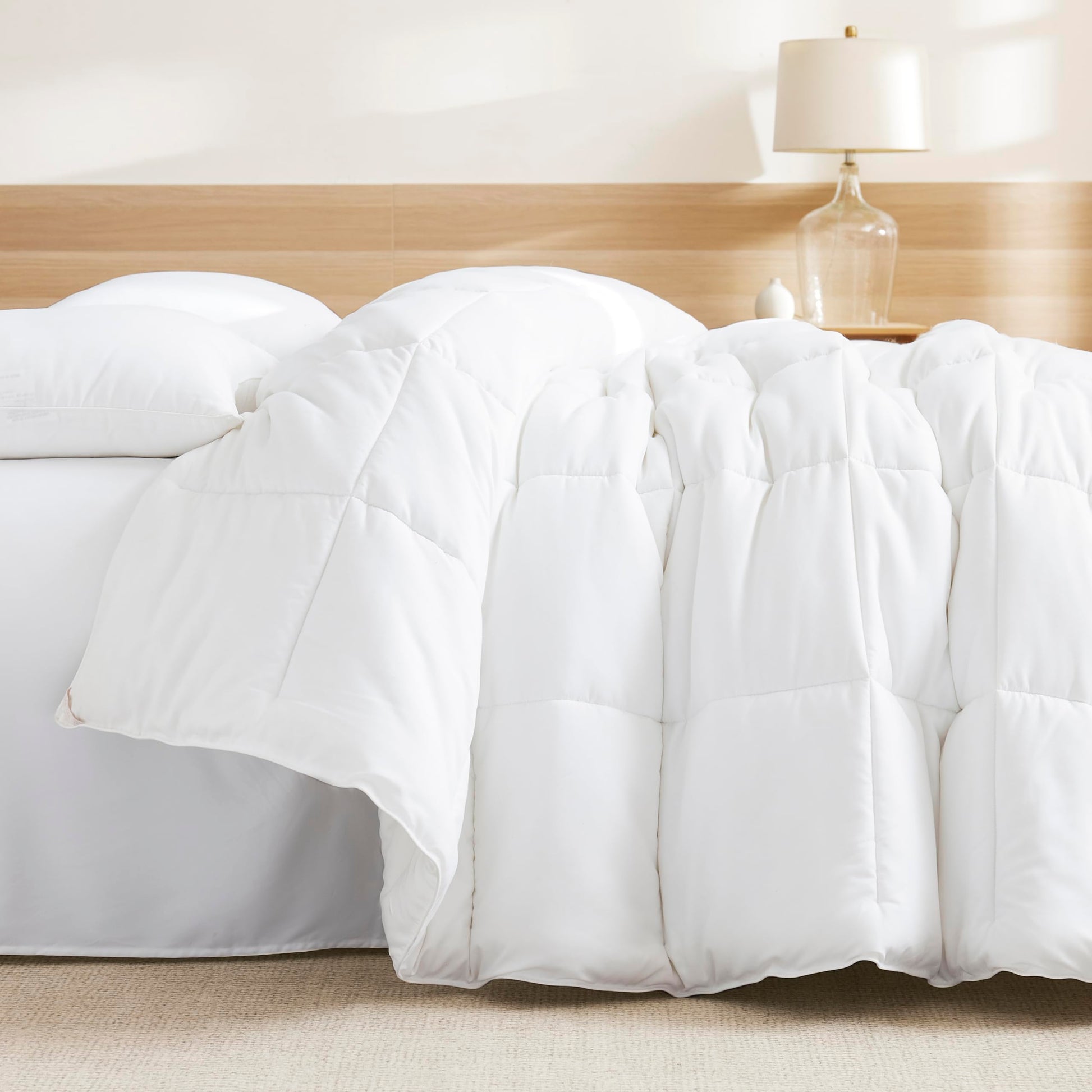 - Ultra Cozy: Crafted with innovative weaving technologies this plush reversible comforter strikes a perfect balance between weight and warmth. Made with premium skin friendly polyester that resists fading and shedding this machine washable comforter is outstandingly durable lightweight and will remain silky luxurious and wrinkle resistant with every wash. Its quilted design ensures extra softness volume and breathability. Experience cloud like comfort you will feel and love.