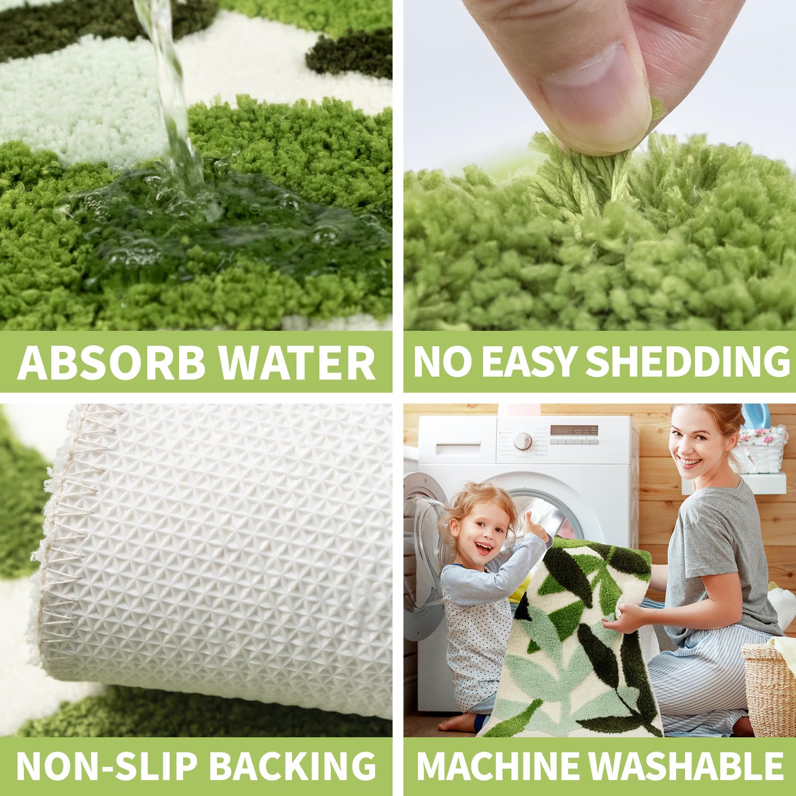 Leaf Bathroom Runner Rug 24x60 Non Slip Long Bathroom Rugs Green Extra Large Bath