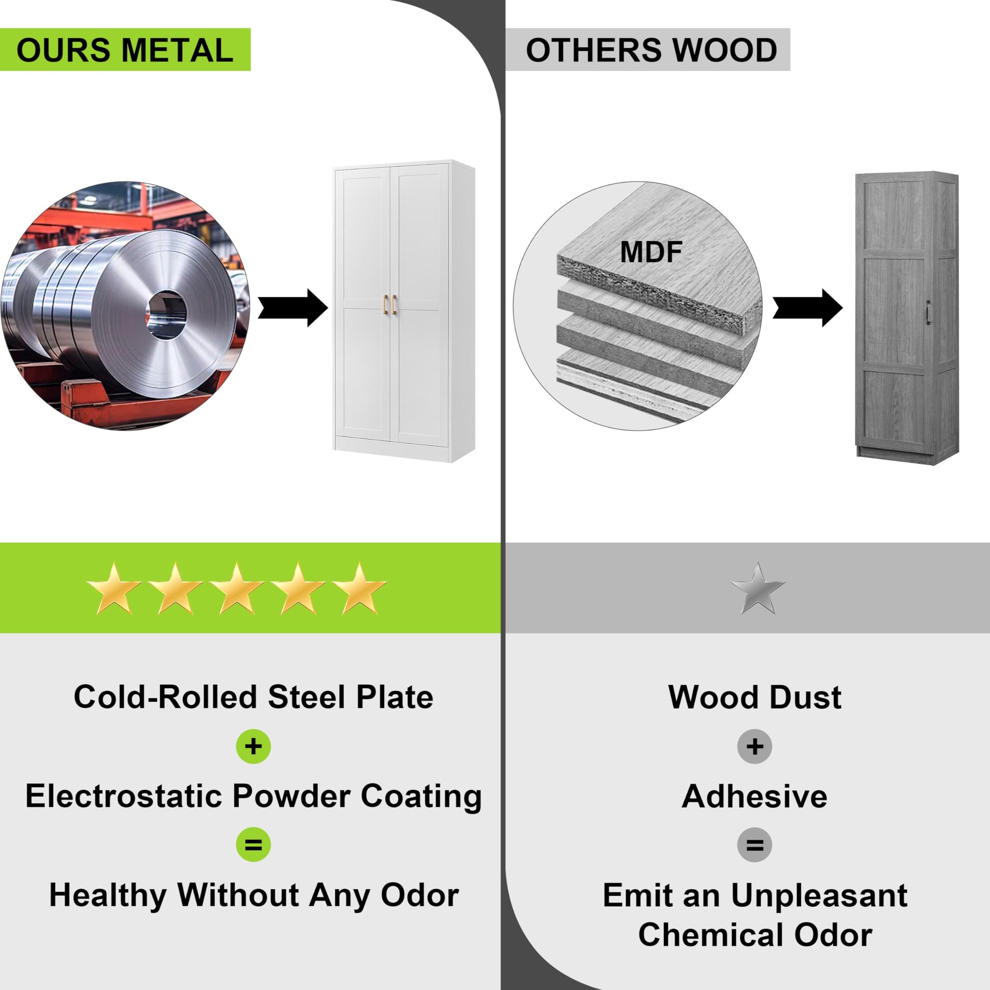- MULTIPLE USES: Pantry storage cabinet is a good assistant for your space organization and storage. Ideal for storing kitchenware, bathroom items, office supplies, and bedroom bedding.