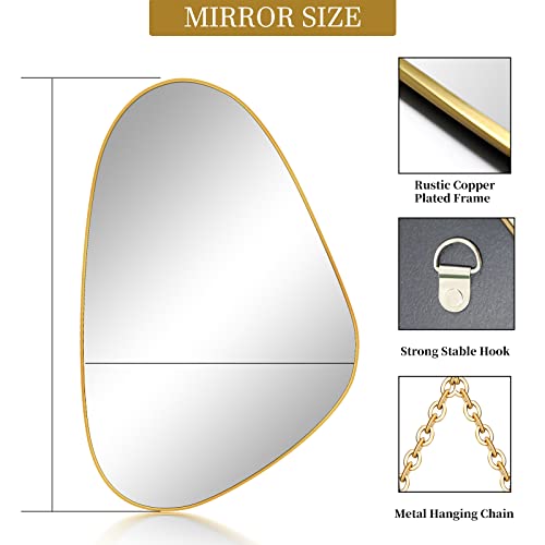 - MODERN & CLASSICAL DESIGN:This asymmetrical wall mirror accentuates the visual appeal of your modern home decor. The golden Brass frame gives this mirror a more classical look with the passage of time.