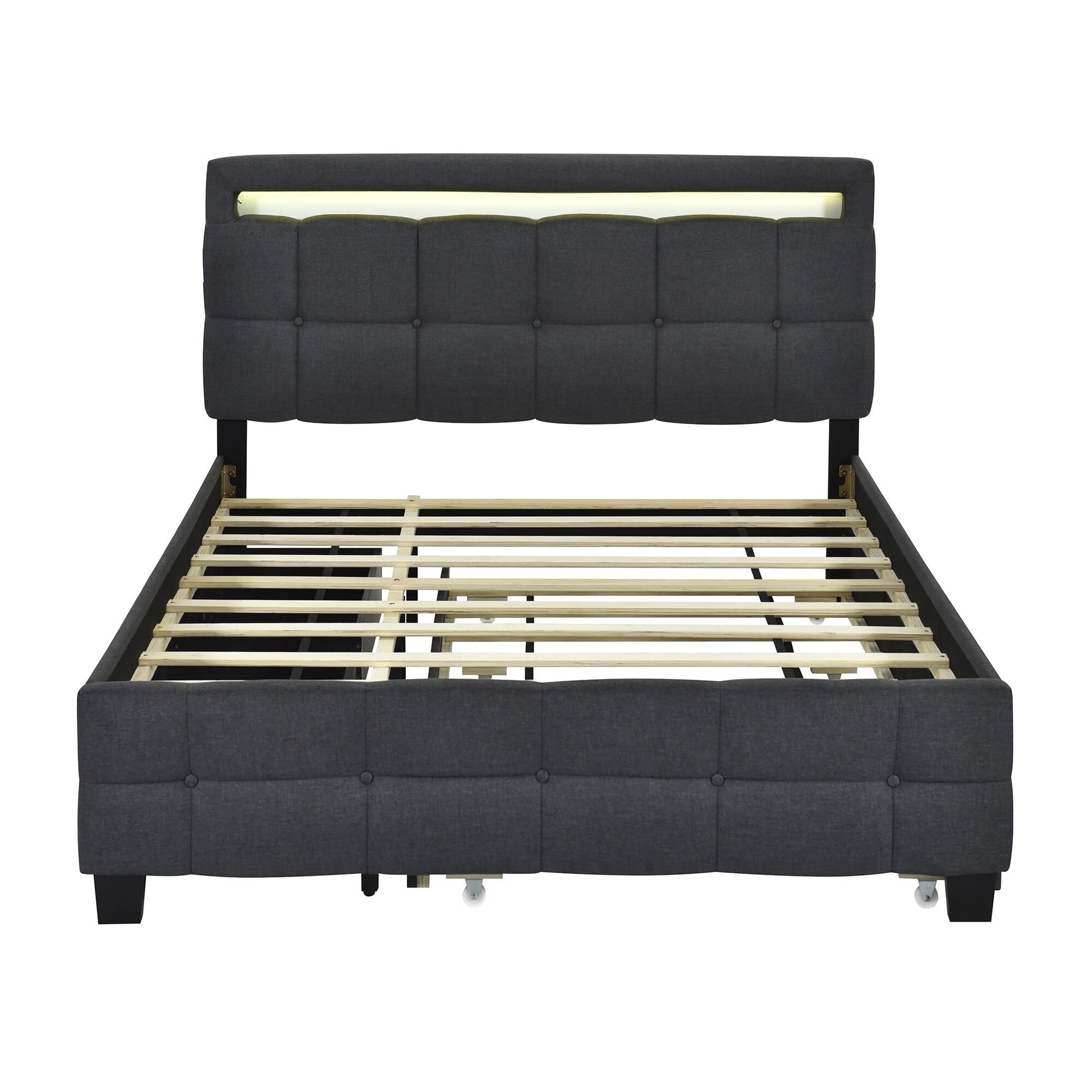 Upholstered Platform Bed with LED Frame Grey - Queen