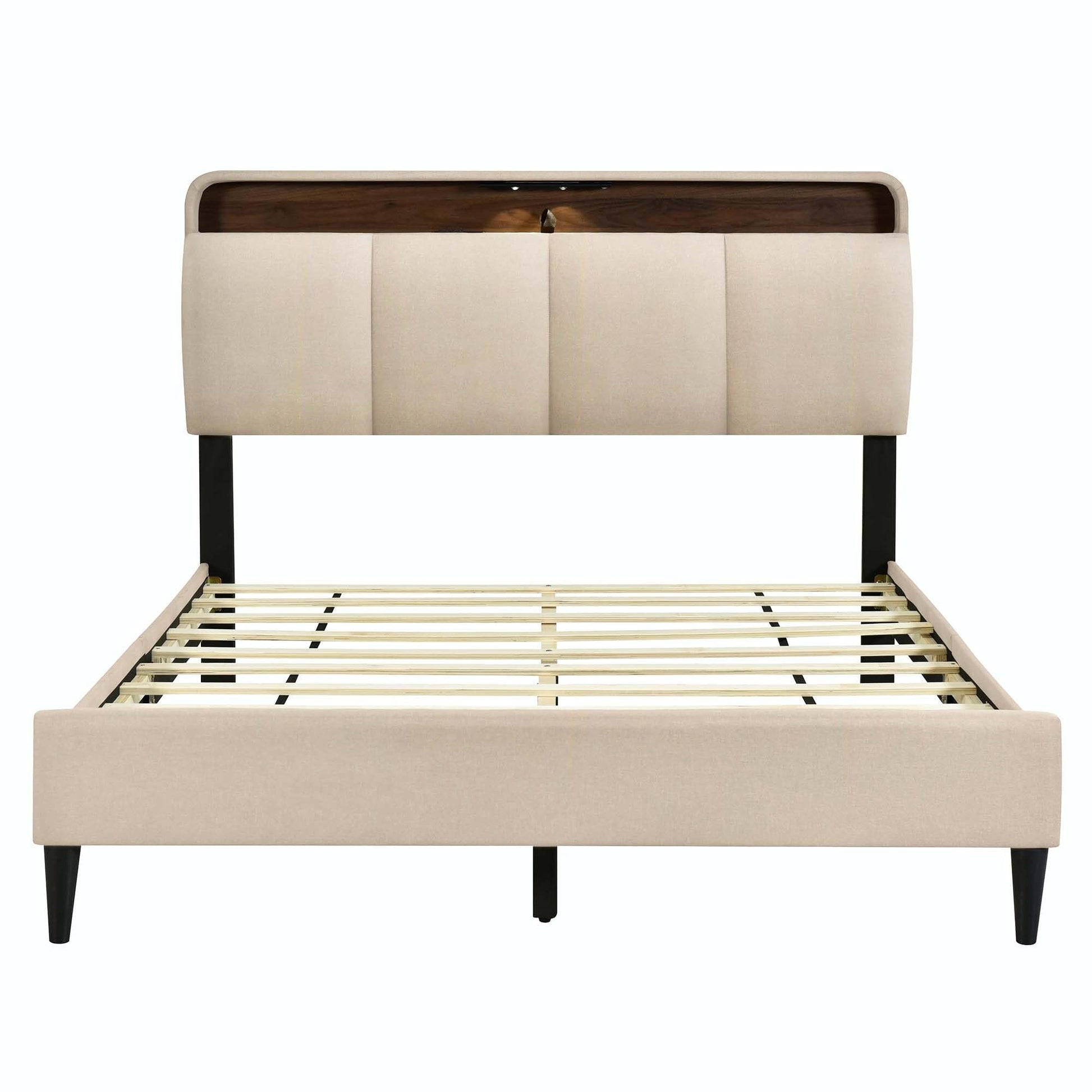 Upholstered Platform Bed with Storage Headboard and USB Ports Gray - Queen