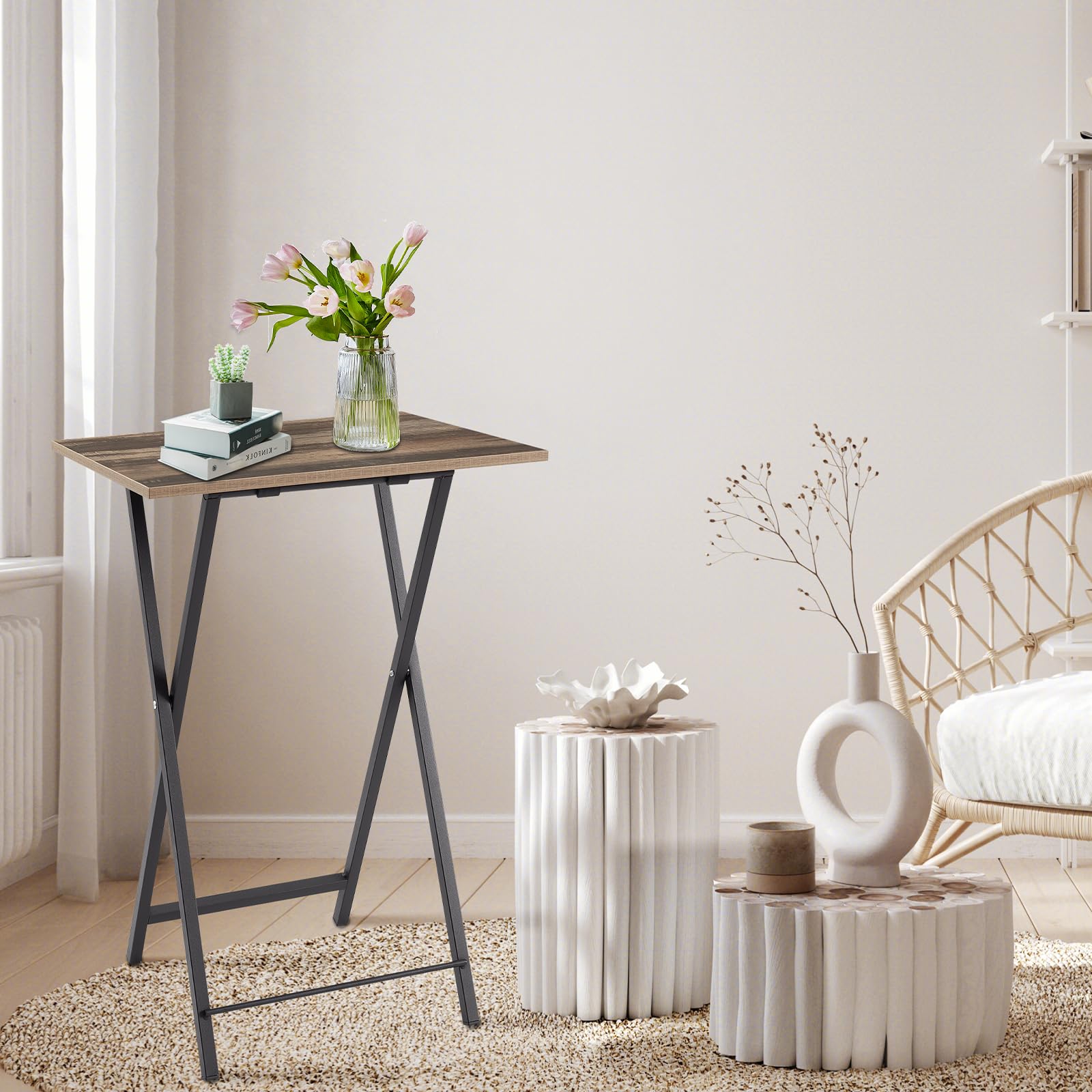 - Durable Construction: Built with sturdy X-frame steel legs and high-quality engineered wood top. Each tray supports up to 35 lbs.