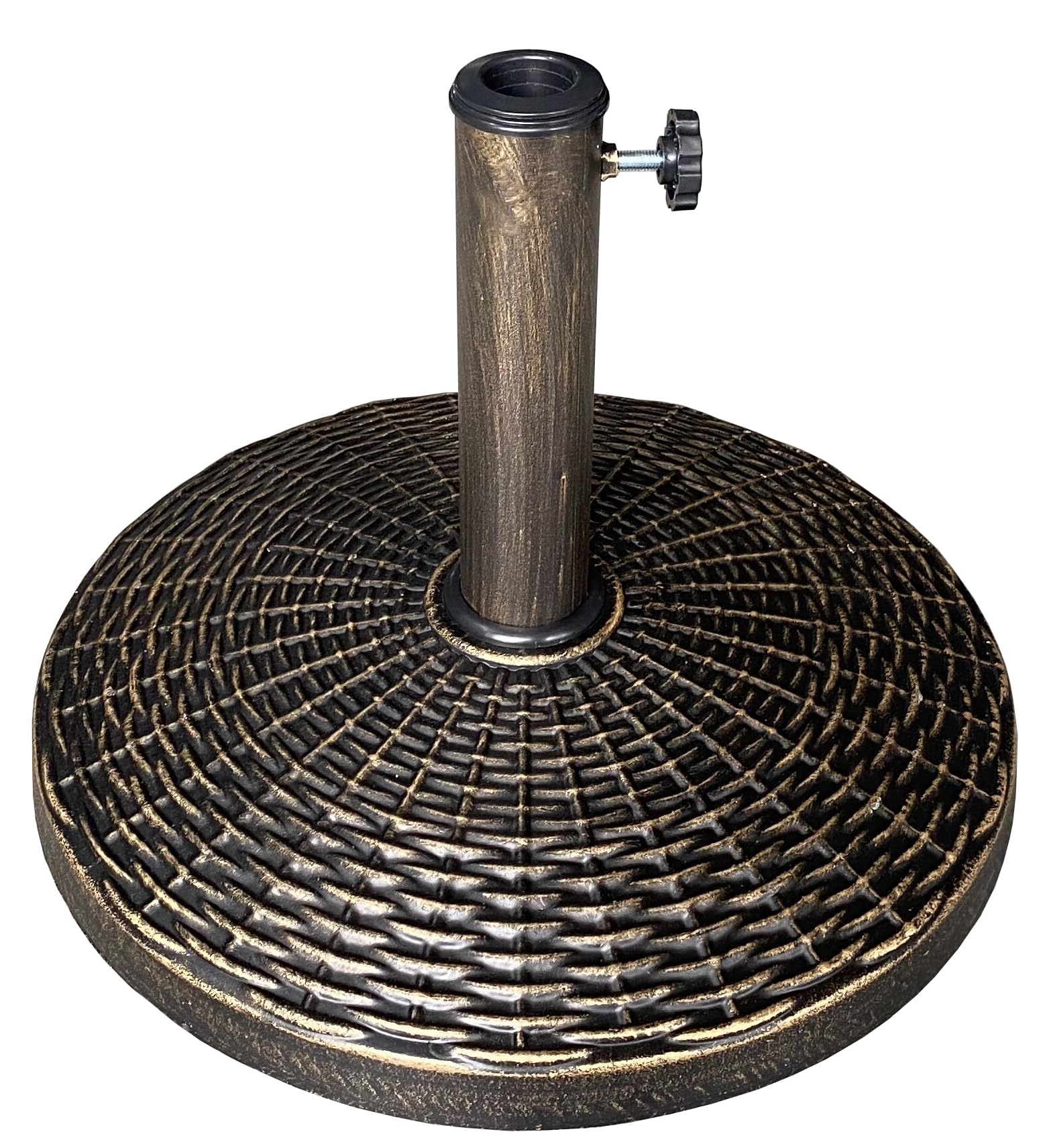 Cast Stone Patio Umbrella Base, 22lb Wicker Pattern - Durable, Weather-Resistant Patio