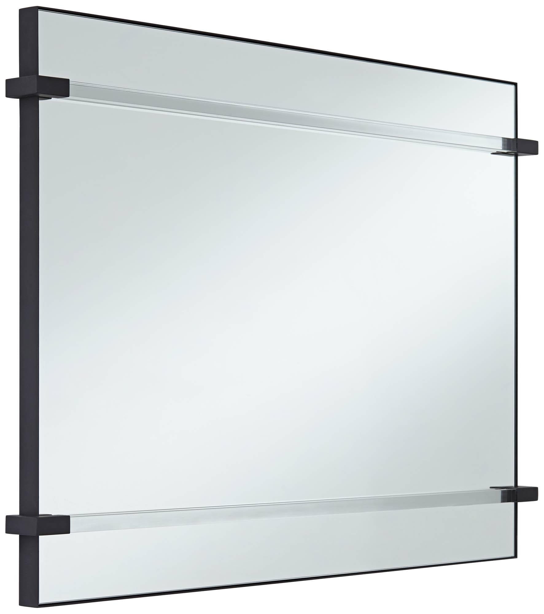 - Matte black finish over iron frame. Polished edge. Square acrylic rods suspended over floating mirror. Non-beveled glass.