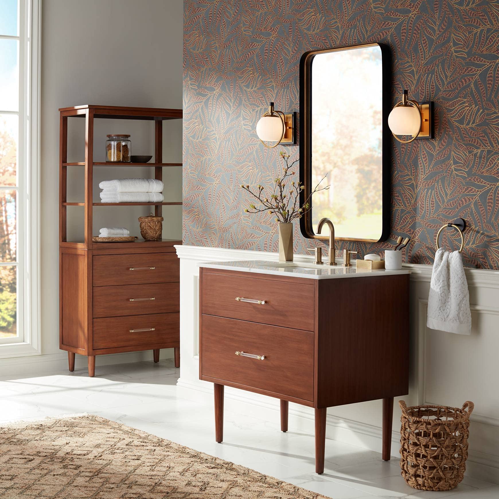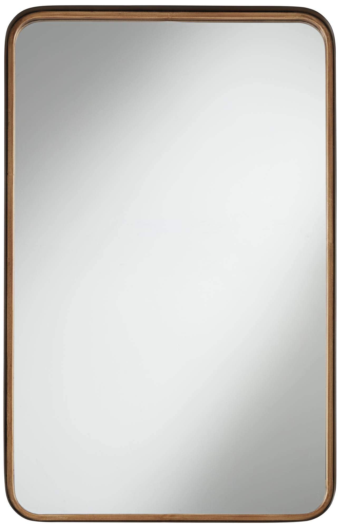 Uttermost Rounded Corner Rectangular Vanity Decorative Wall Mirror Modern Rustic Gold Black Iron Frame Beveled Edge 24" Wide for Bathroom Bedroom Living Room Home House Office Entryway