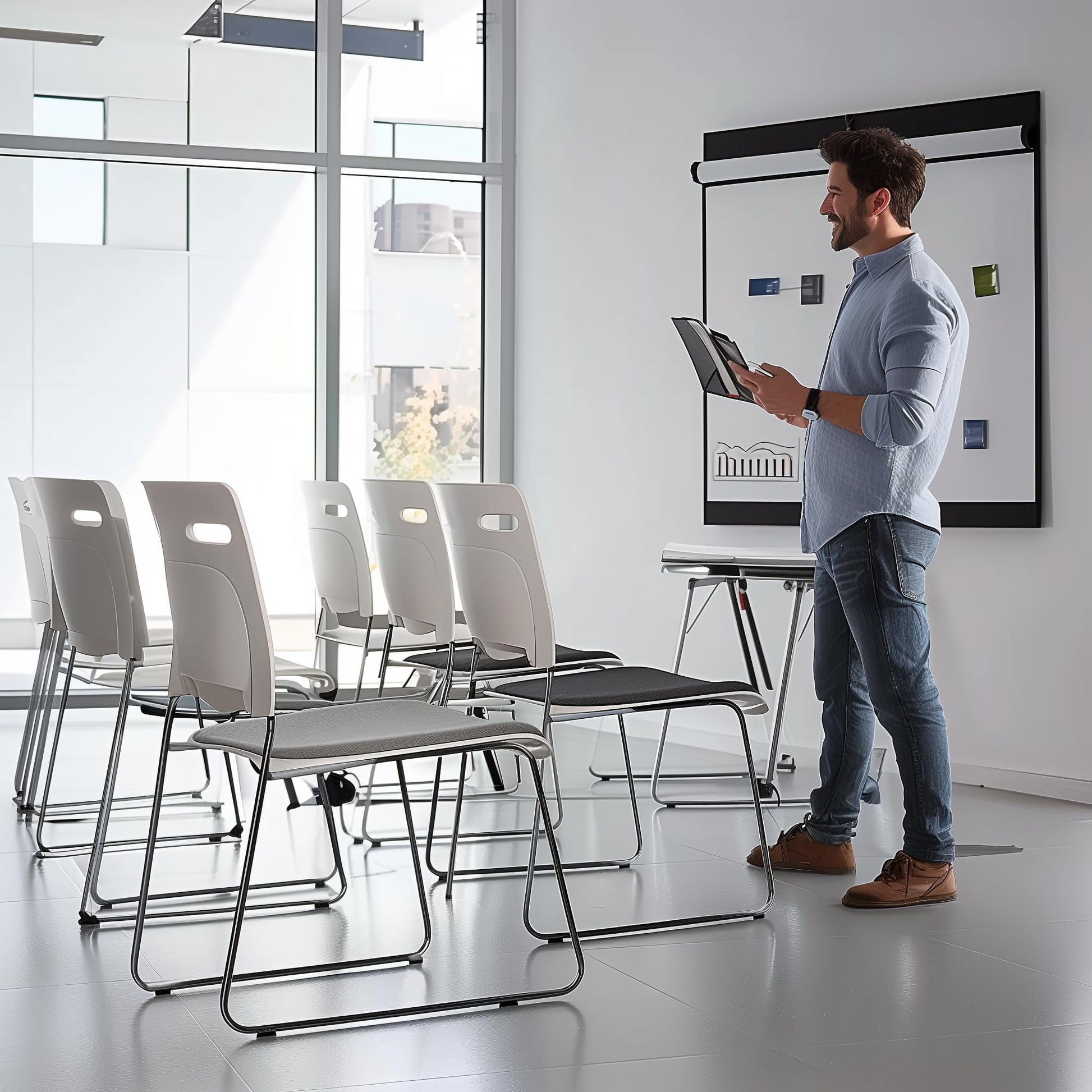 - The stackable design makes this reception chair easy to store, saving a lot of space. You can put them in office breakrooms, waiting areas, reception, meeting rooms, seminars, churches, community centers, hotel business centers, etc.