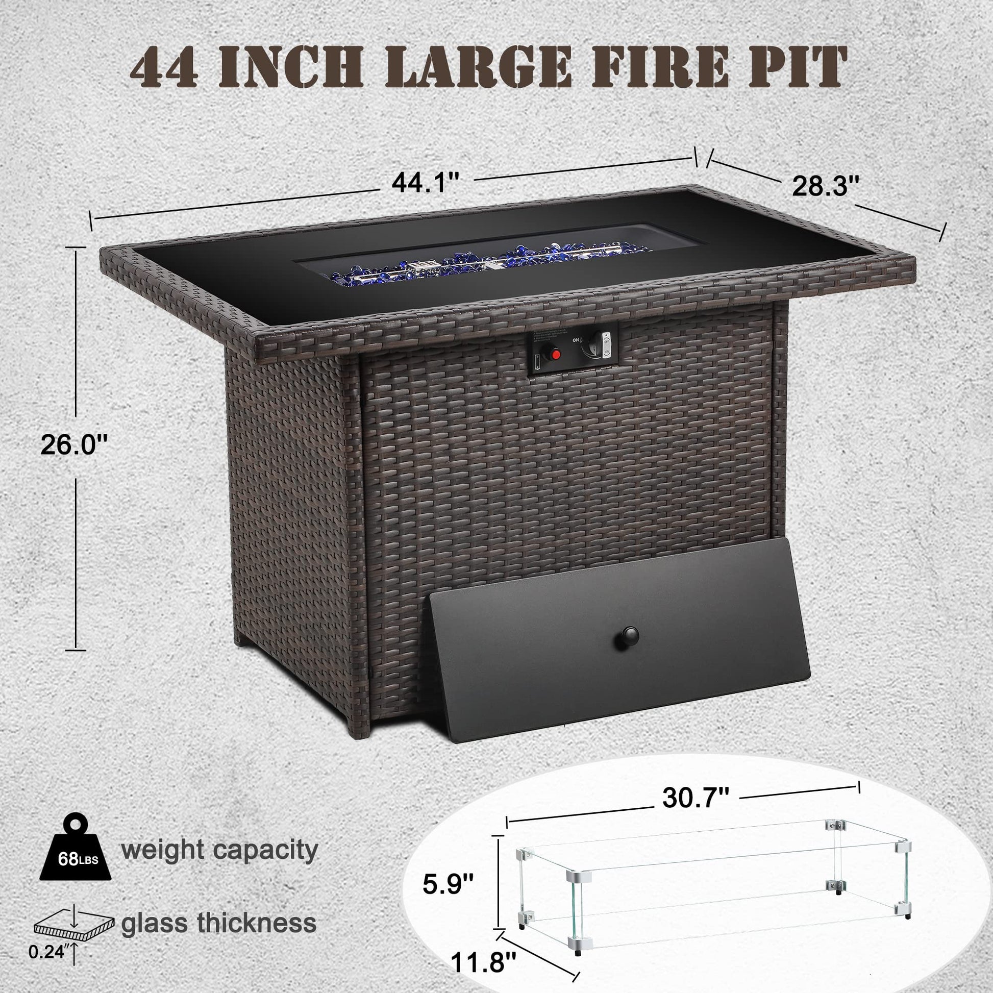 Propane Fire Pit Table,44 Inch 55000 BTU Gas Fire Pit with Glass Wind Guard