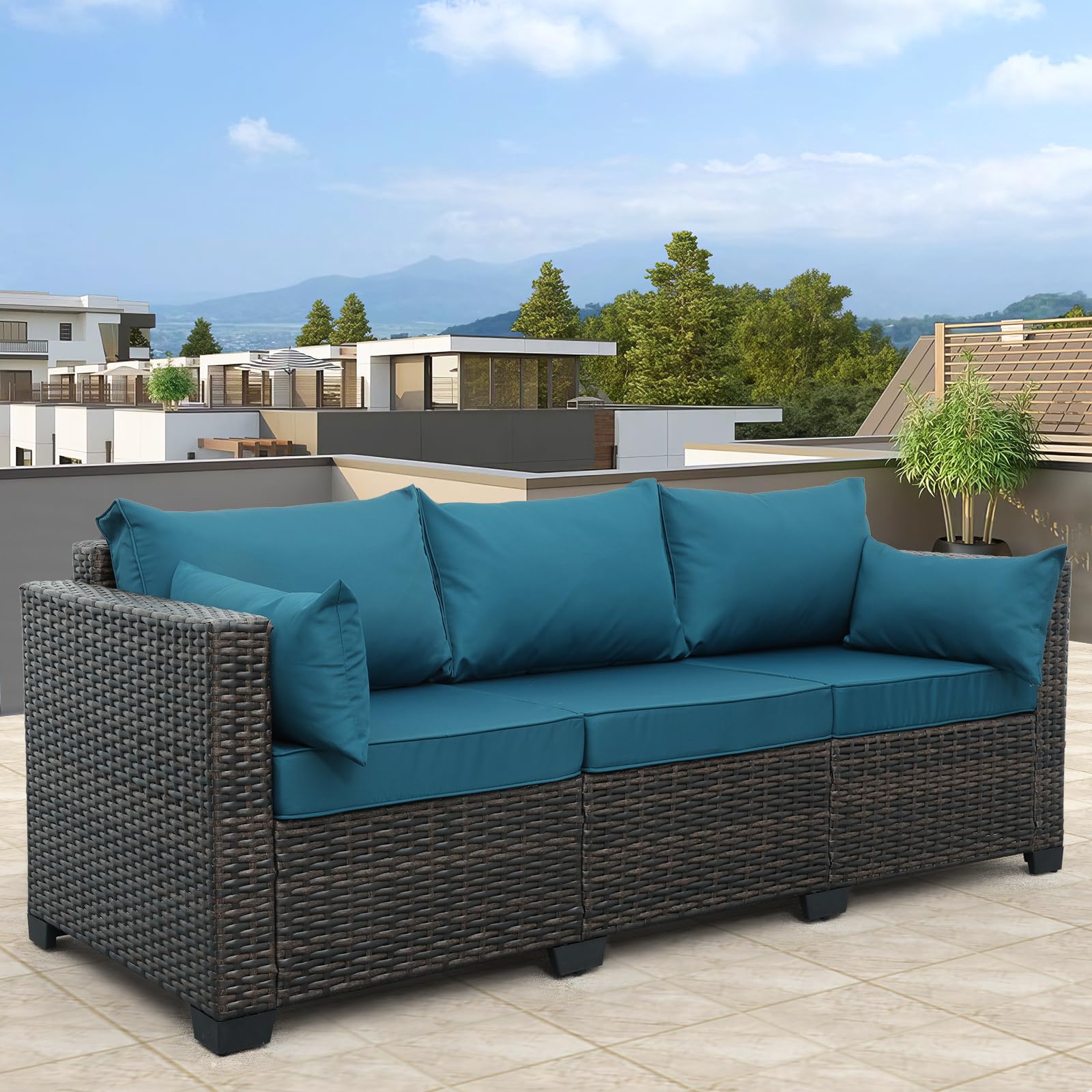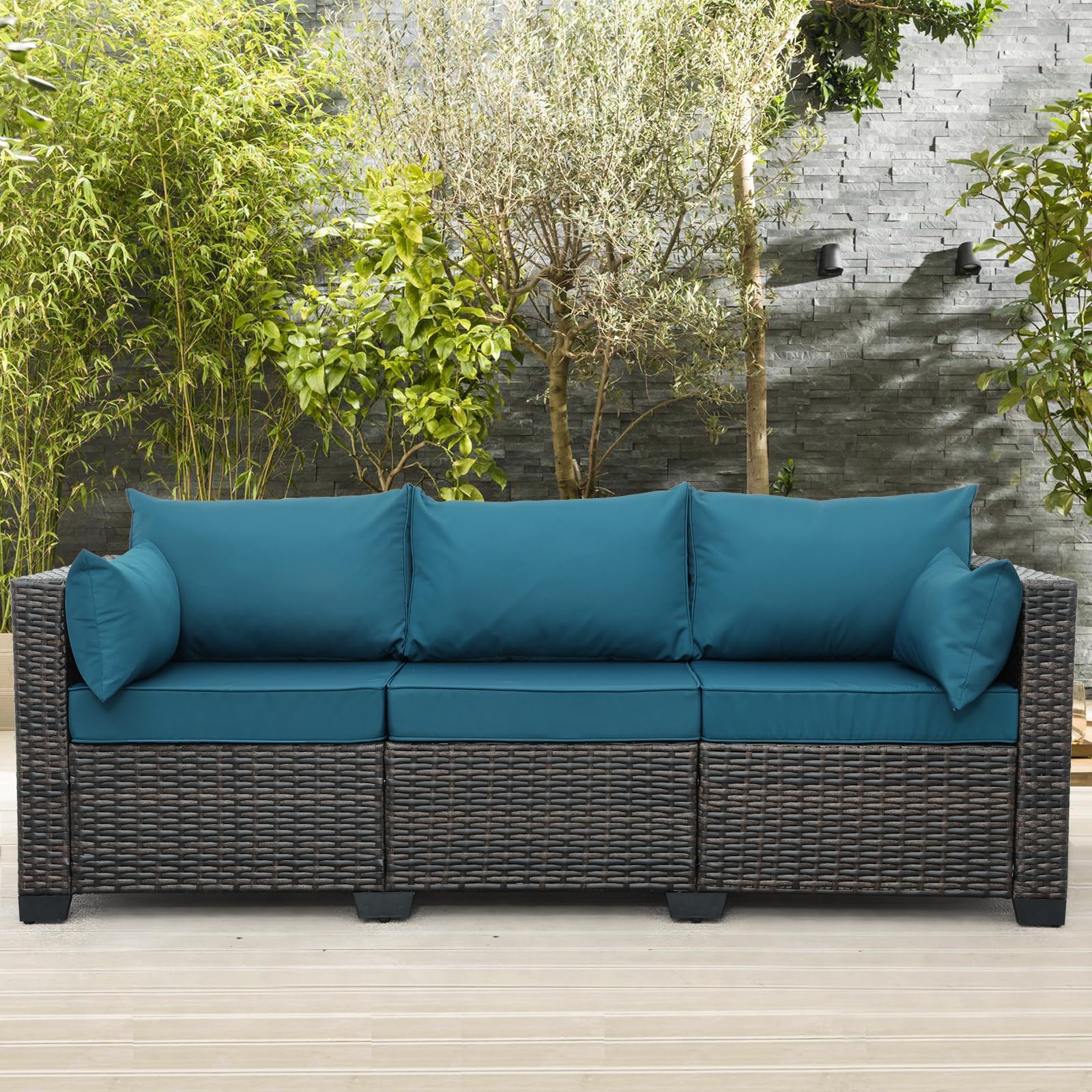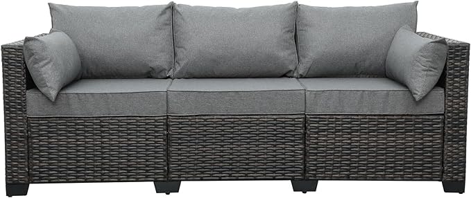3-Seat Patio PE Wicker Couch Furniture Outdoor Brown Rattan Sofa