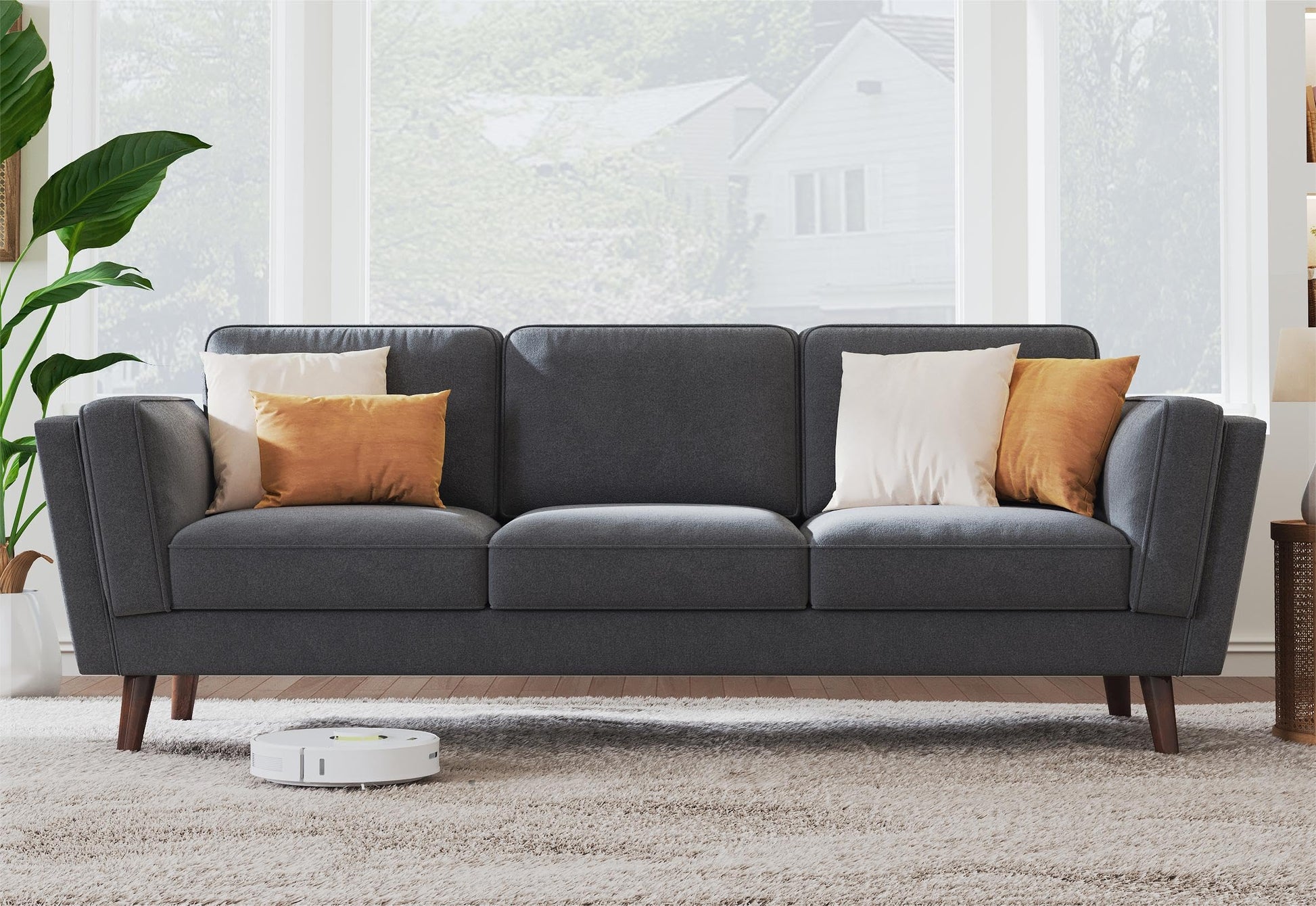 87in Sofa Modern Sofa Couch - Embedded Arm Pillow 3 Seater Sofa Deep Seat Sofa