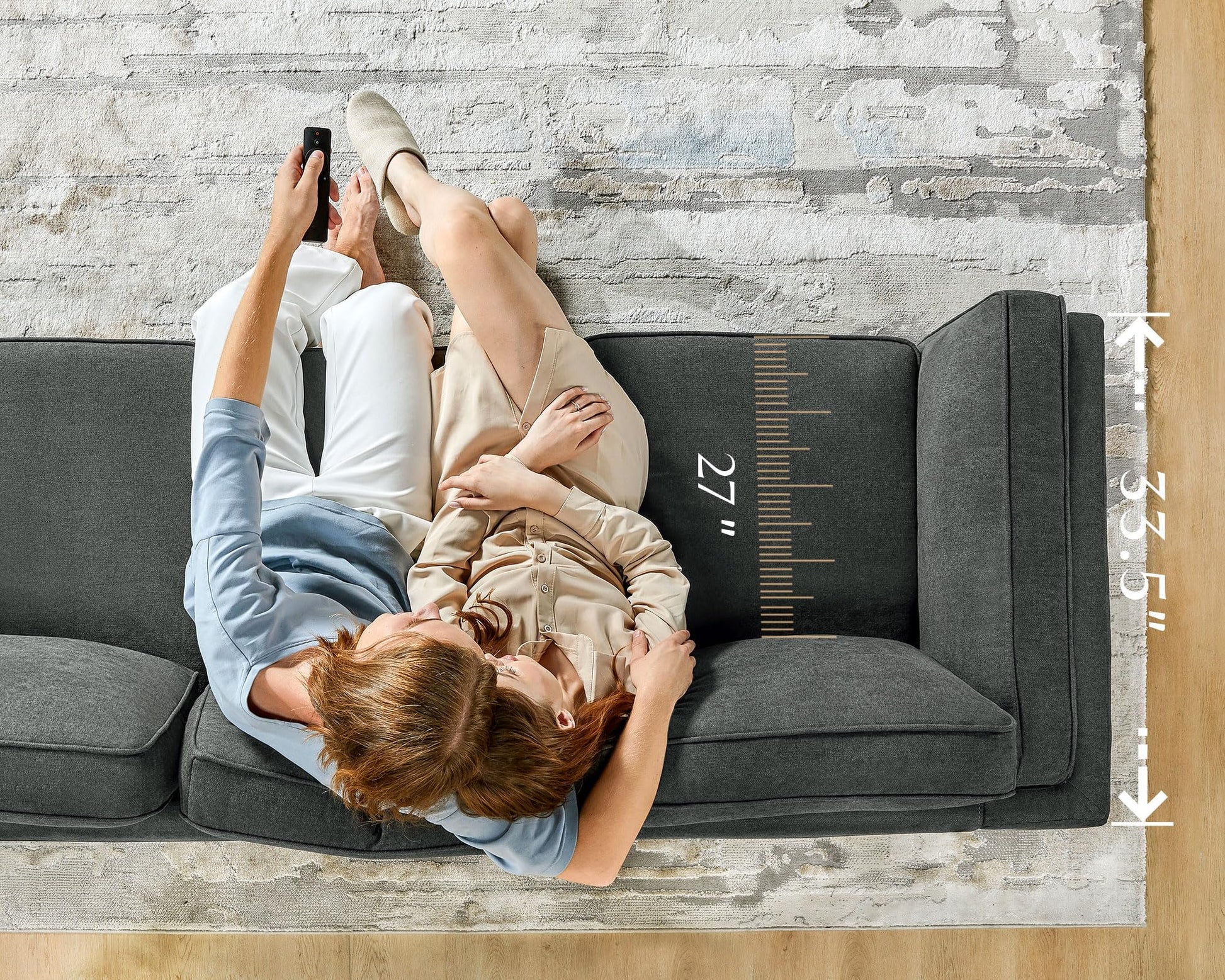 - Spacious Roomy Haven: 87 inch spacious seat width and 27 inch seat depth of the large sofa accommodate both relaxation and social gatherings. Its inviting expanse envelop you in a cocoon of comfort