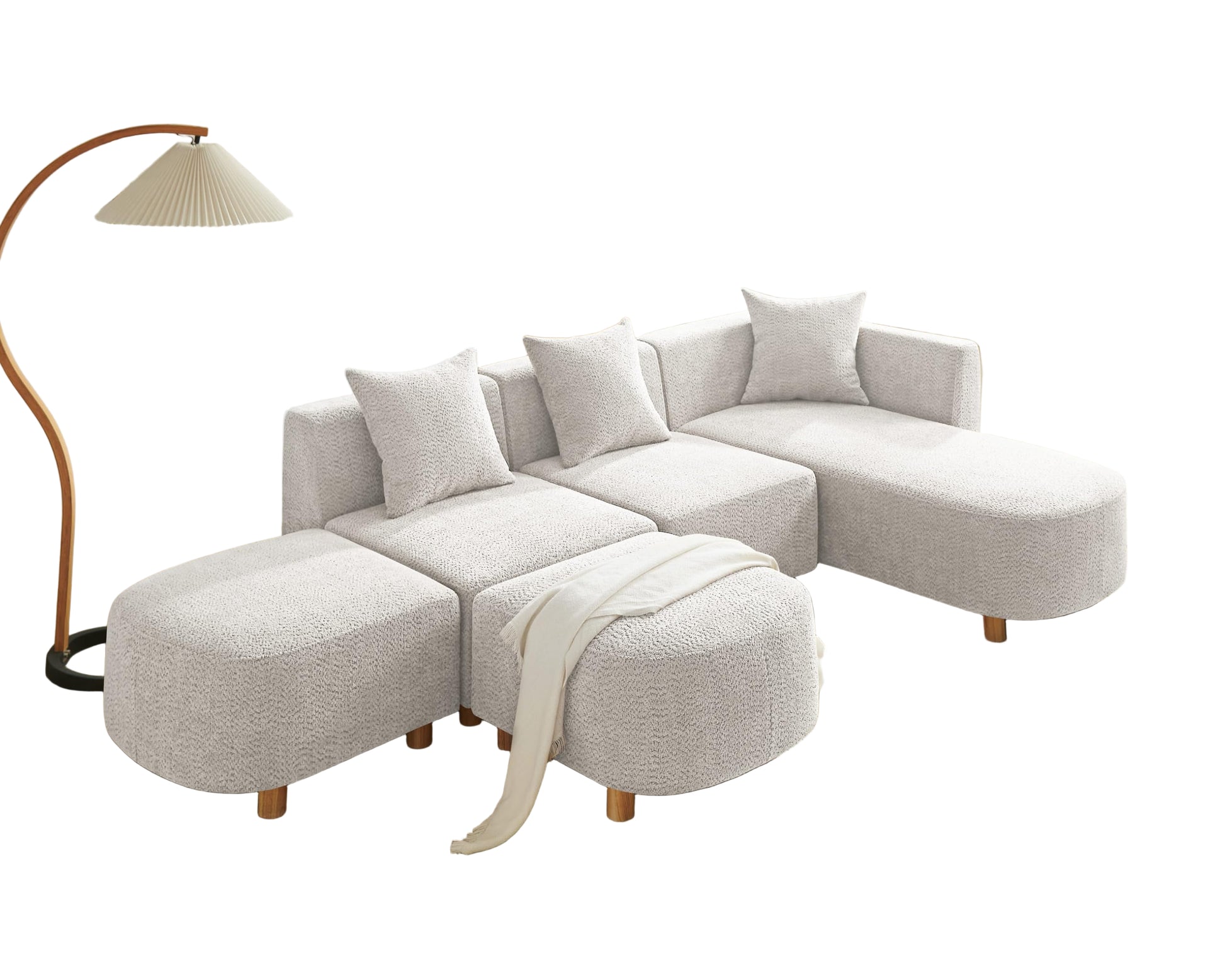 - Flexible Modular Design: This modular sofa with chaise adopts modular design,which can be easily configured in 2 deformation modes according to the space layout,seamlessly integrated into any living space,and equipped with 3 pillows,providing strong back support for your long-term sitting,making you feel comfortable