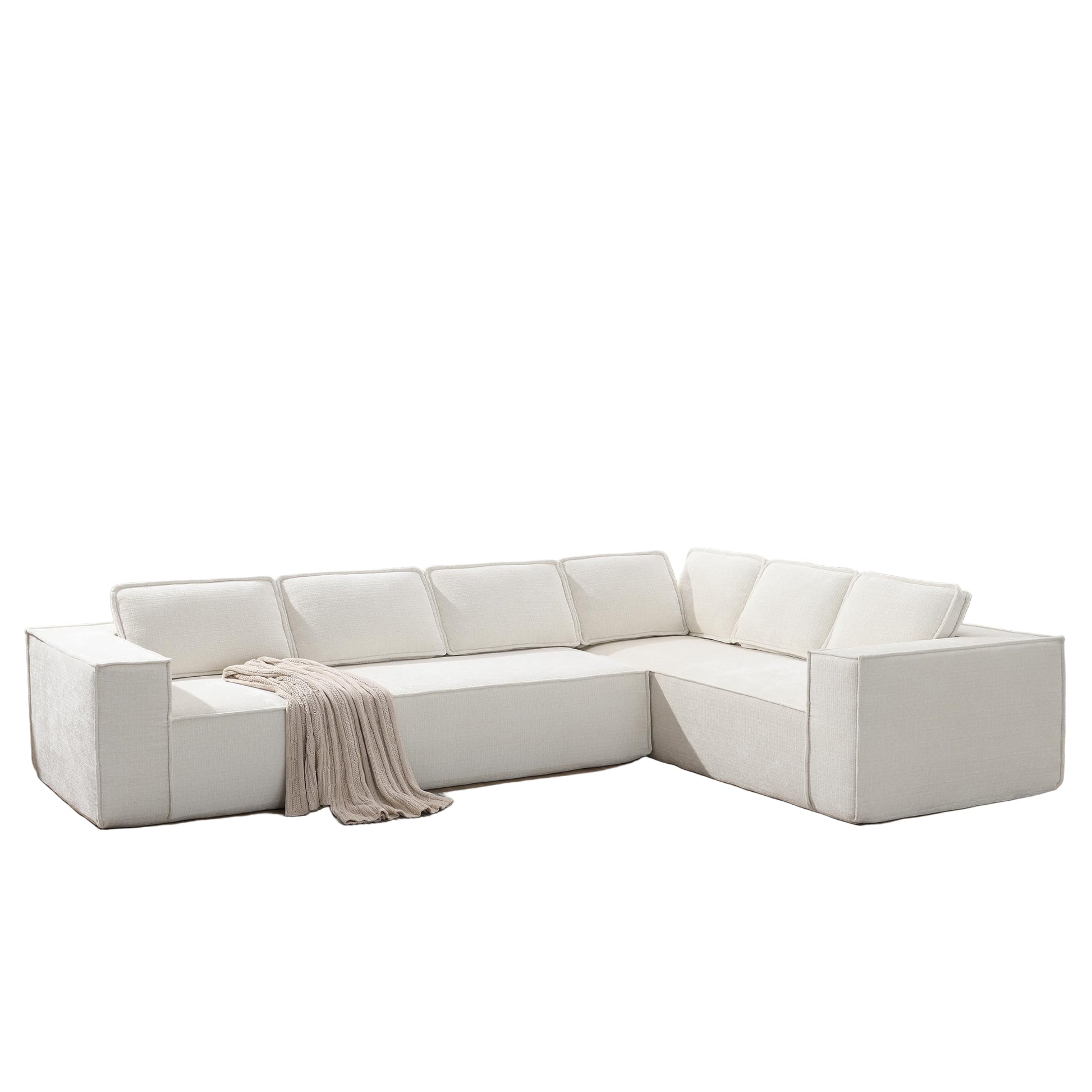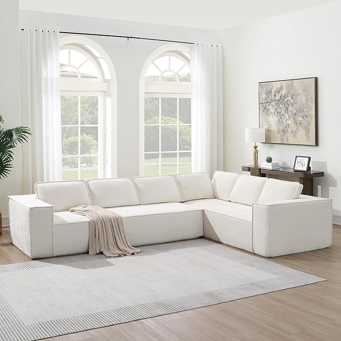- Experience cloud-like comfort with the modular L-shaped sofa’s premium chenille fabric, designed for breathability, durability, and silky-soft texture. Ideal for families or pet owners, this skin-friendly sectional couch resists pilling and abrasion while maintaining a luxe aesthetic. Perfect for movie nights in the living room, cozy Engineered for lasting comfort, this L-shaped sectional sofa features high-density foam cushions and reinforced spring padding for optimal spinal alignment. Whether hosting guests or unwinding after work, the sofa’s deep seats and sturdy frame provide unmatched support. The 89.5” wide chaise and 129.5” total length ensure ample legroom, making it a top choice for spacious apartments, open-plan lofts, or entertainment-focused living areas.