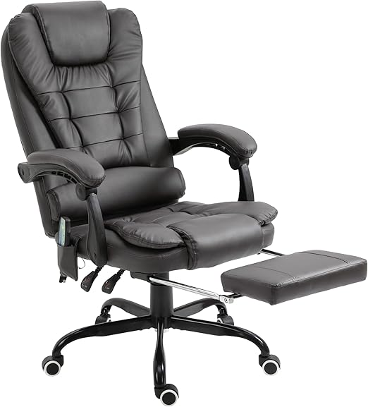 Massage Computer Chair with Padded seat and Adjustable Height - Black PU Leather