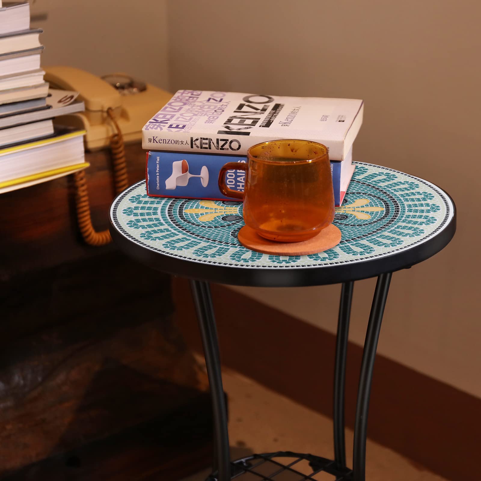 - Smart Size to Any Space: This table top diameter is 14 inches and table is 4.8 lbs, super easy for you to move it around.The table is smartly made to fit any space. It is the perfect size for little sitting areas and also can perfectly match any large spaces. It will just beautify your space with this pretty mosaic table top design