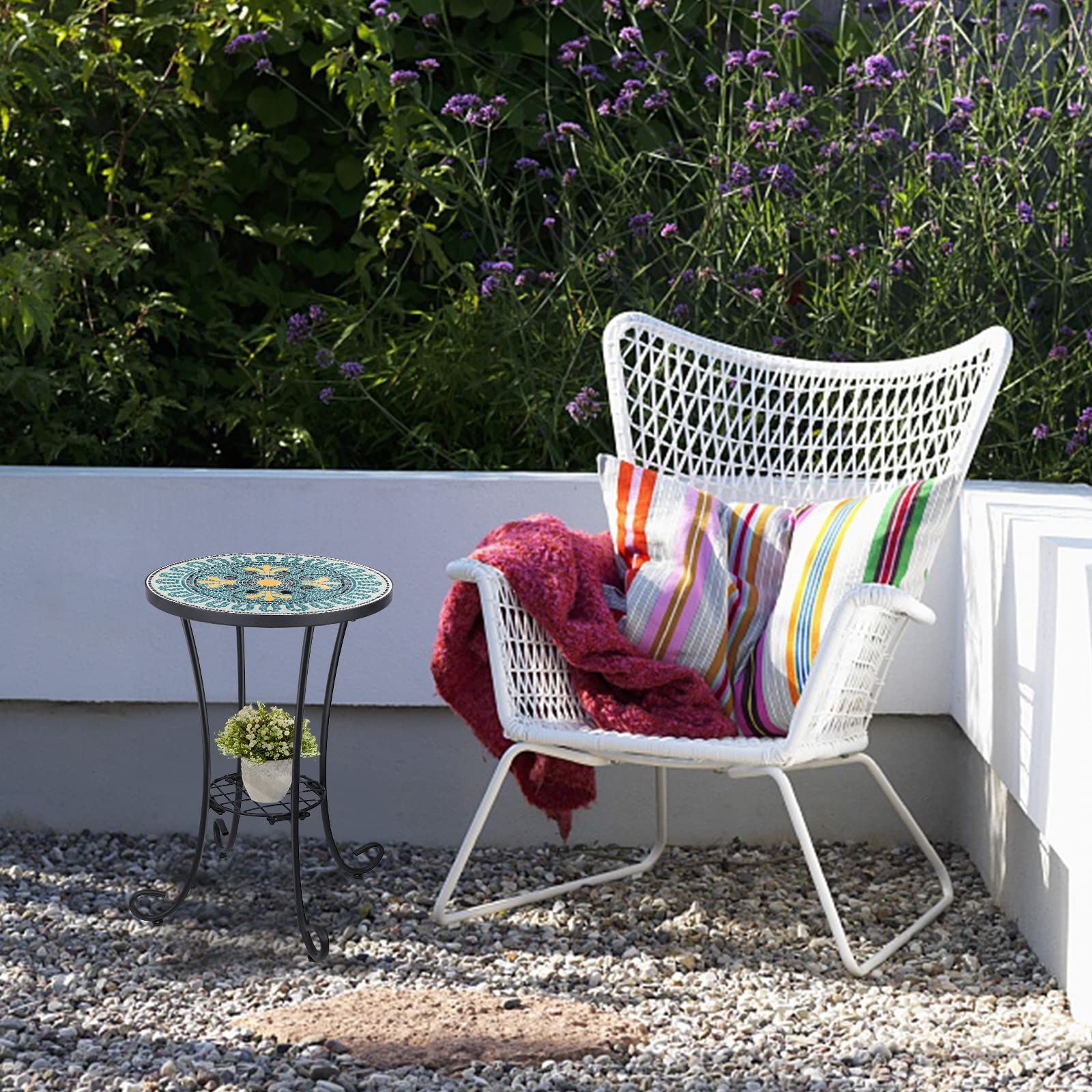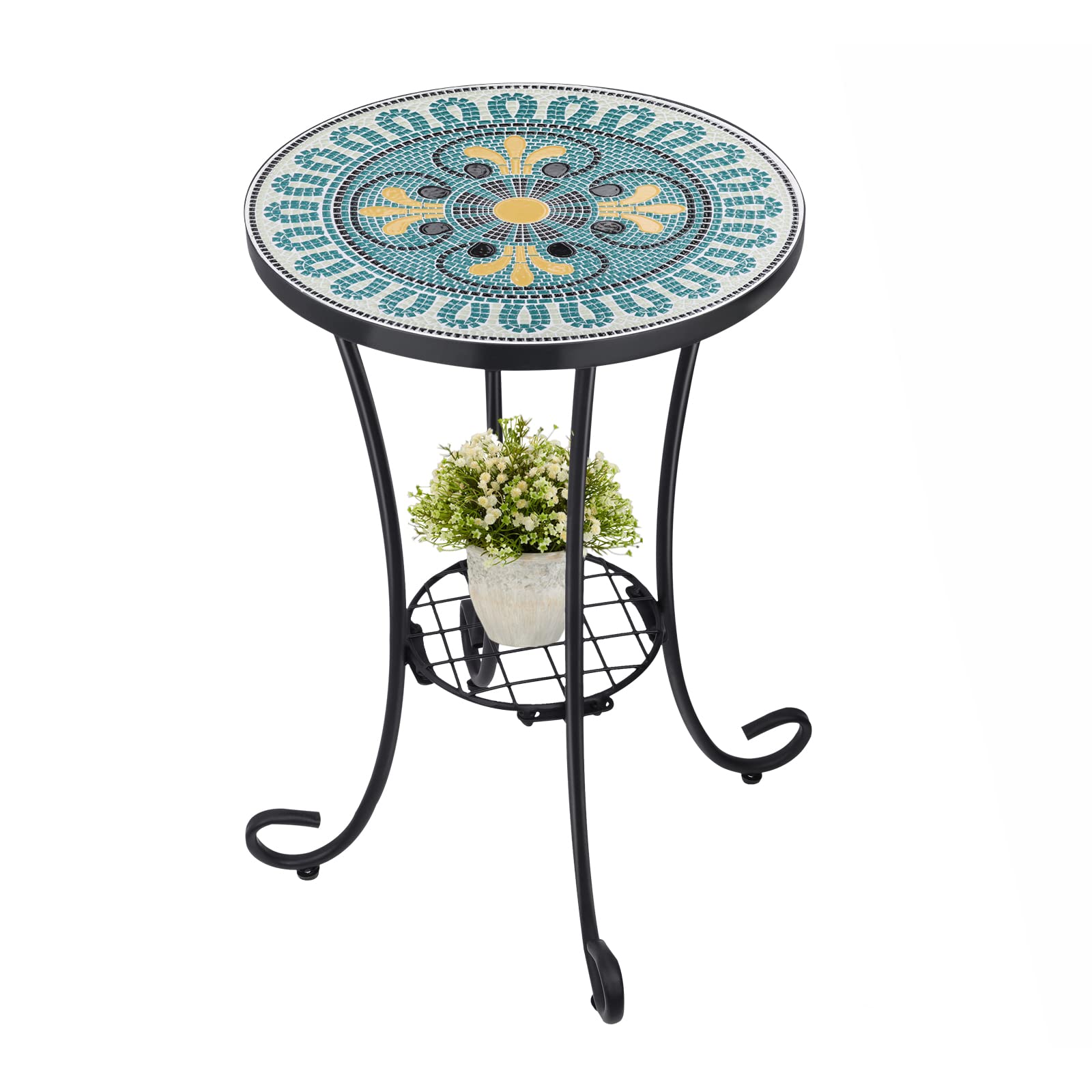 - Retro Design Mosaic Side Table : The series of plant side tables are all of clear texture and bright colors. The outdoor side tables is round mosaic top with pretty purple flower pattern. You will love the quality and looking when you place it in your space