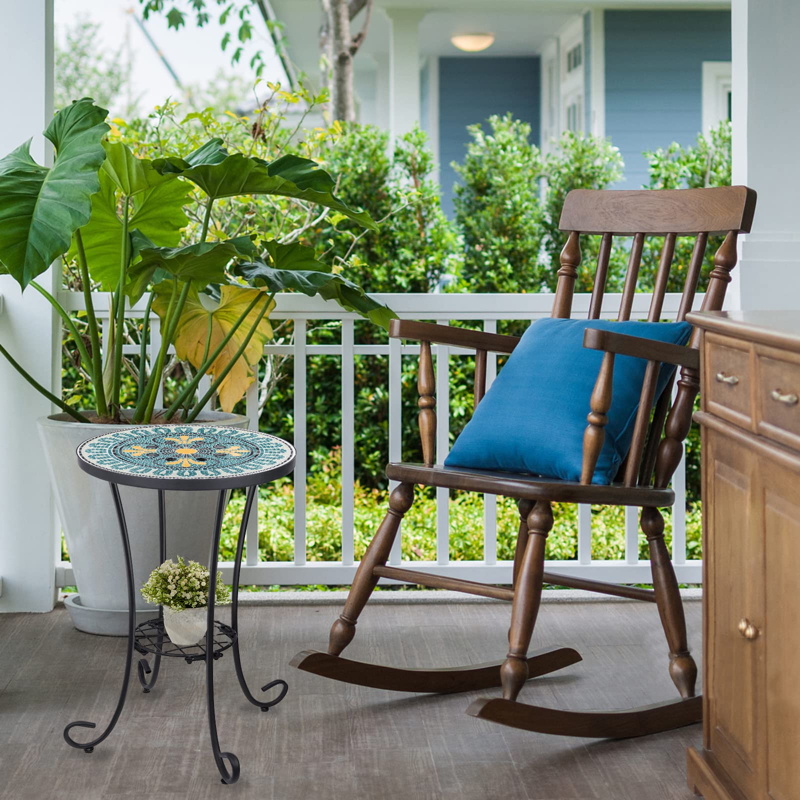 - Sturdy Metal Frame and Durable Mosaic Table Top: The table is constructed of reinforced metal frame and round mosaic top. the table legs cross support and graceful curved legs design make it more stable,It is sturdy and stable for your daily use