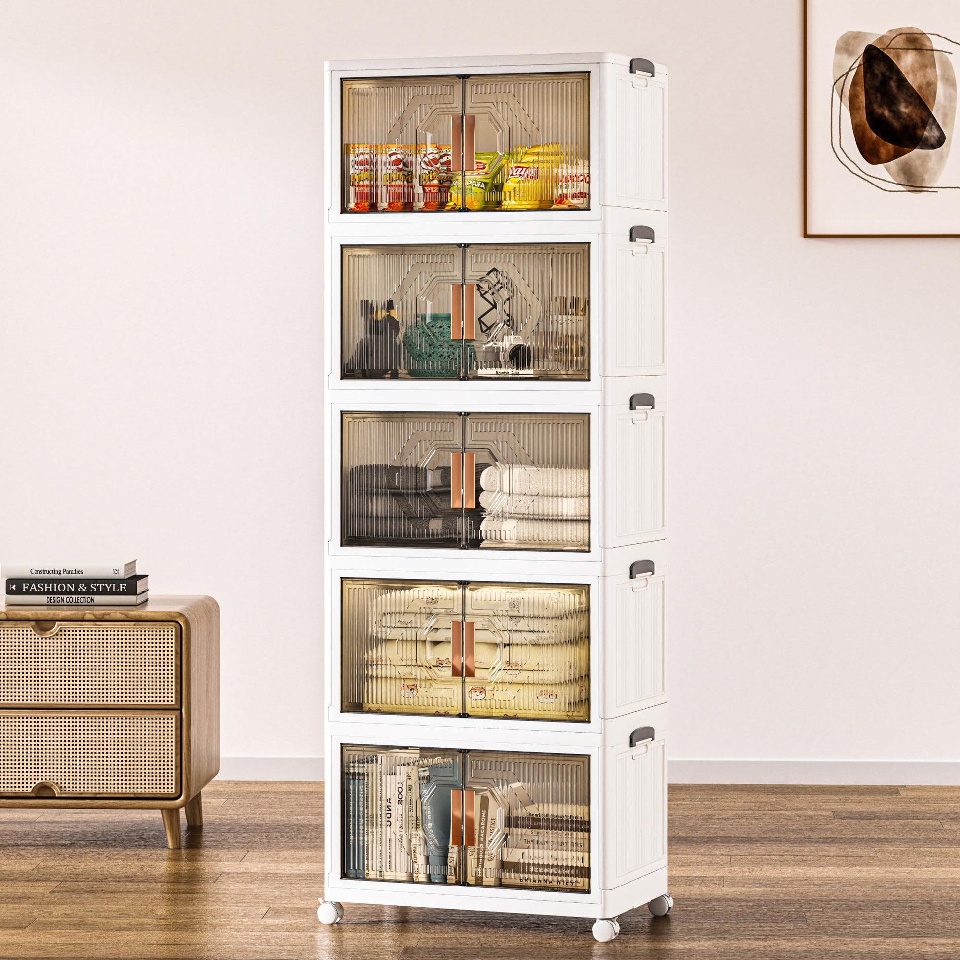 - The wheeled folding storage cabinet can be opened in two ways—either through the top lid or the front door. The magnetic lock dual-opening doors, coupled with transparent windows, facilitates easy organization and access while preventing dust. The charming rectangular door of the foldable storage box adds a modern and stylish touch to your home decor.