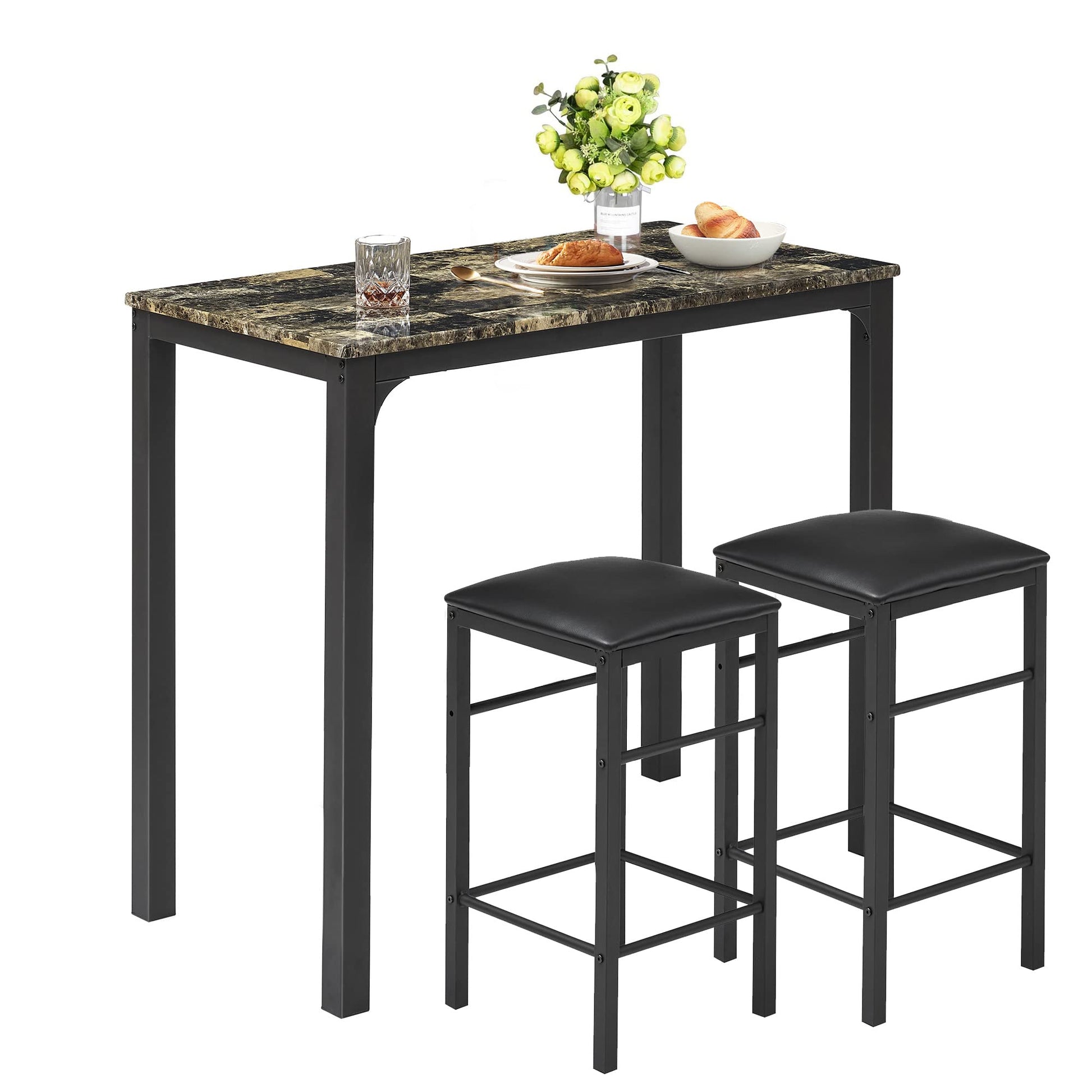 - Classical elegant look:The faux marble tabletop adds a touch of classical elegance for your kitchen or dining room.