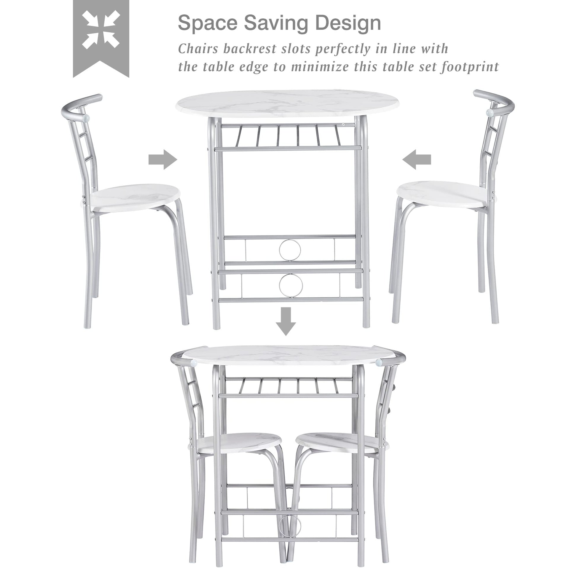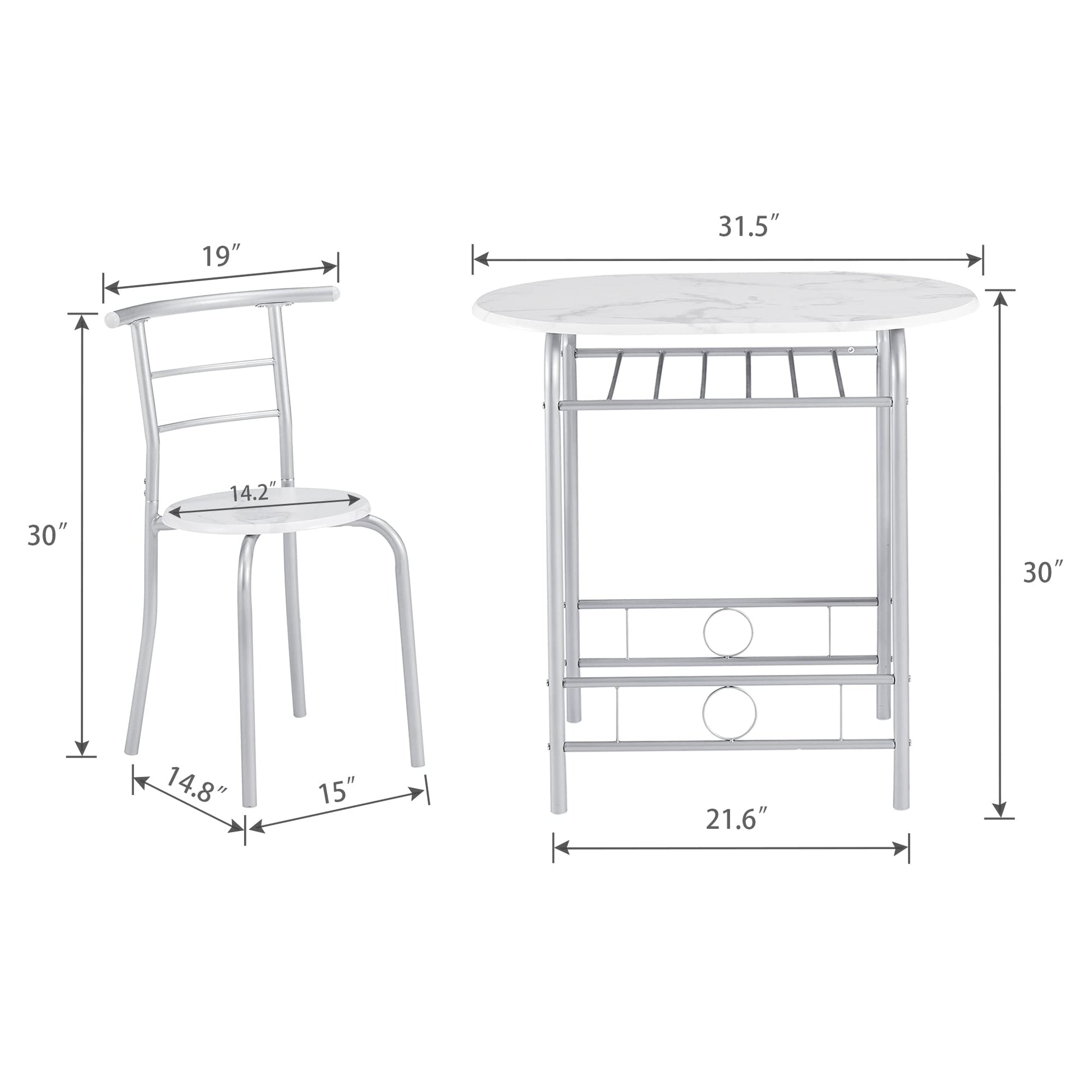 3 Piece Small Round Dining Table Set for Kitchen Breakfast Nook