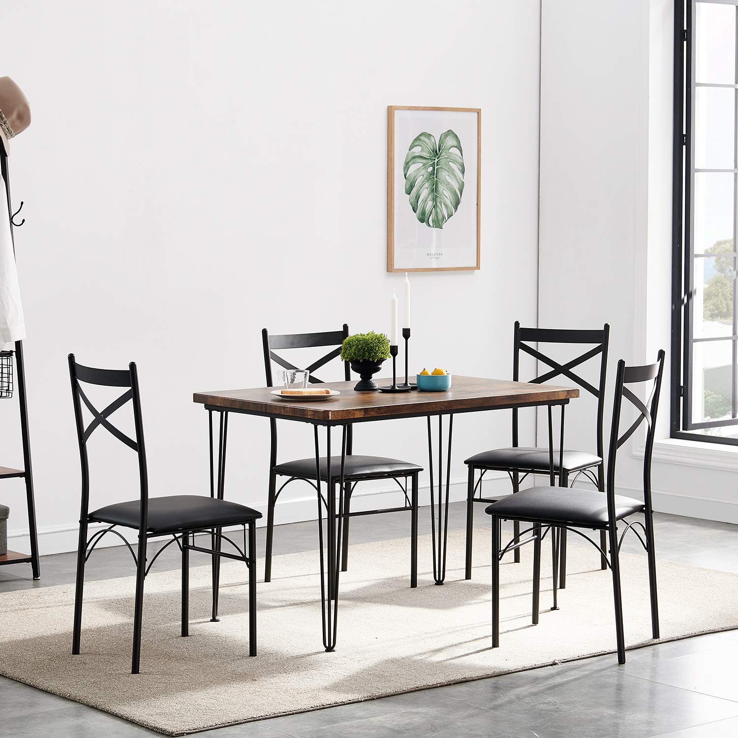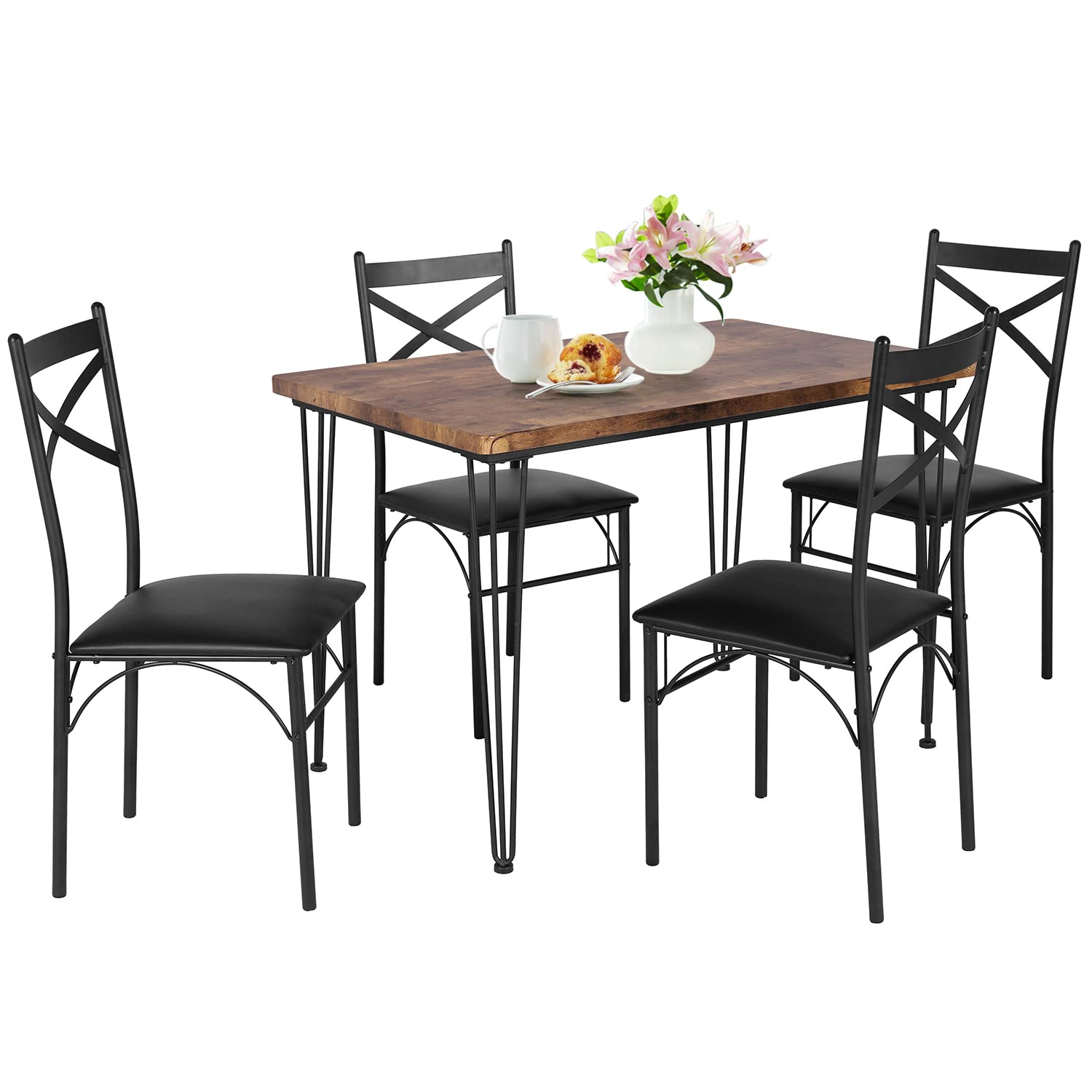 - Vecelo kitchen table and chairs are designed of friendly MDF board with heavy-duty steel frame, the rectangle tabletop can support all your dinnerware and hosting decor. Features waterproof and scratch resistance.
