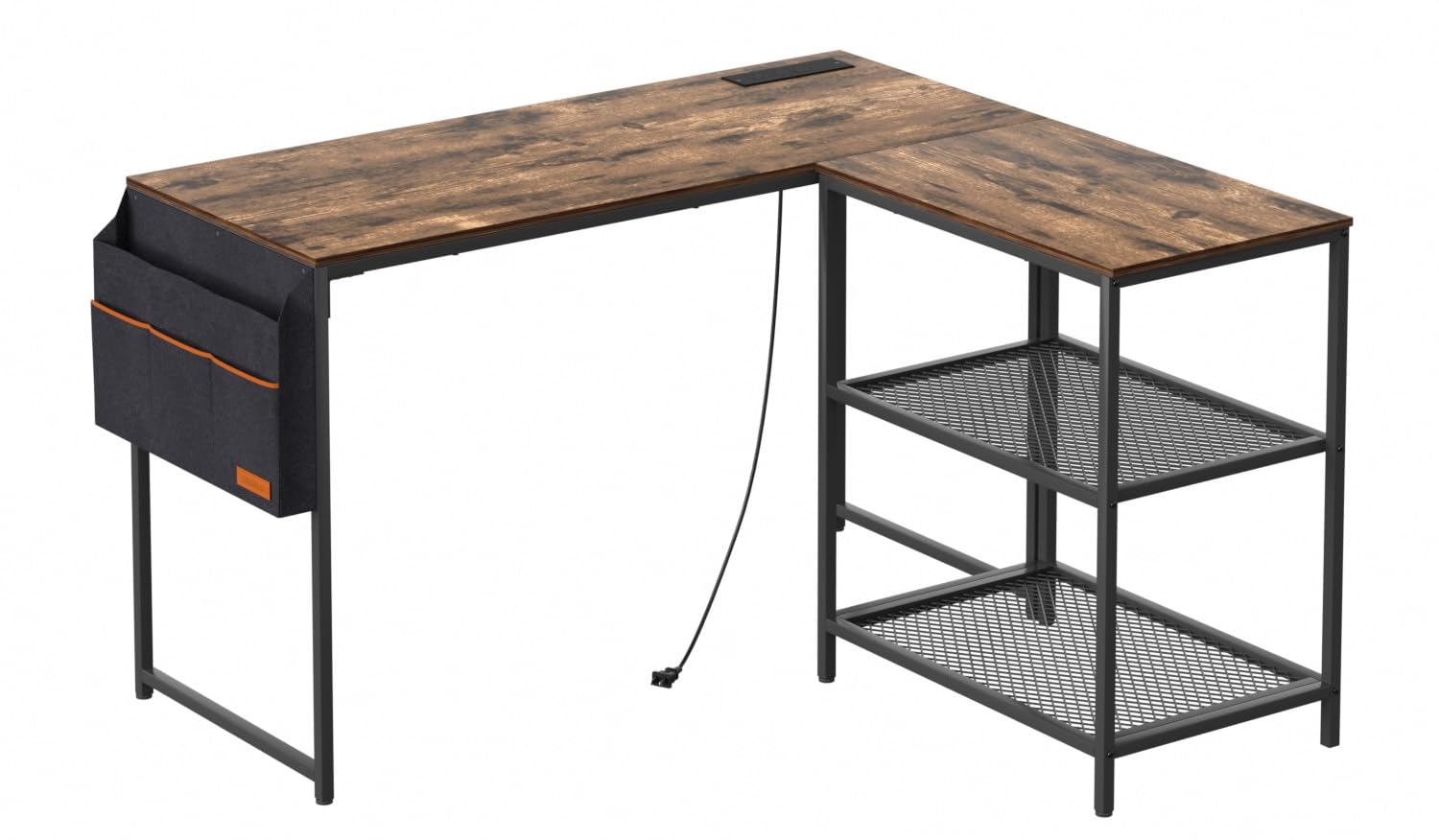 - Our L-shaped desk maximizes corner space with versatile storage solutions. Featuring a spacious desktop for office, writing, and entertainment needs, it includes two shelves for a printer or miscellaneous items. Additionally, convenient side storage pockets ensure easy access to headphones, documents, pens, and gadgets, keeping your workspace organized and clutter-free.