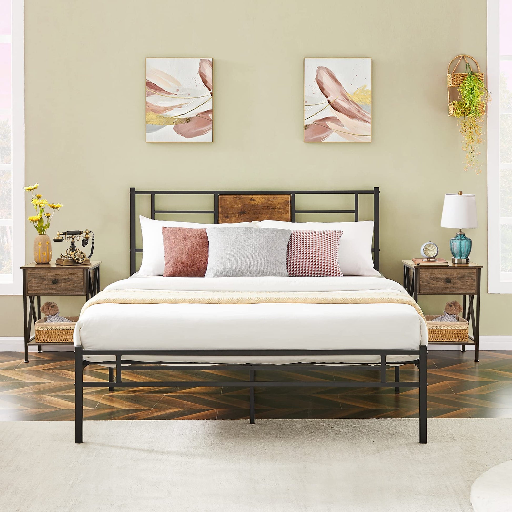 - Decorate Your Space with This Industrial Nightstands Set of 2 - The classic wood tabletop and black steel frames complement each other and create the glossy shine of the vintage look. These modern end tables are perfectly placed next to any bed, sofa, or recliner. End Tables Dimensions: 11.8"D x 15.8"W x 21.7"H