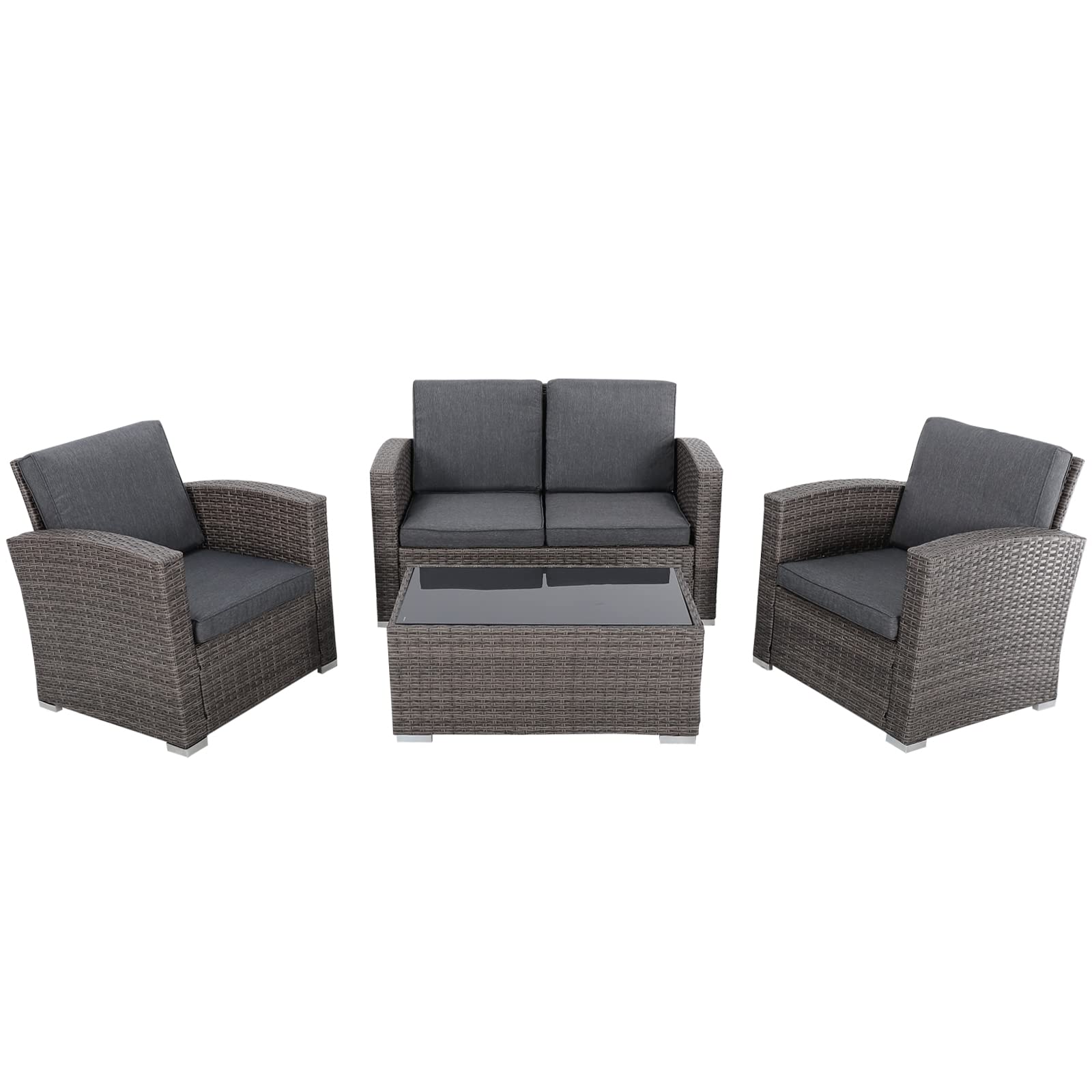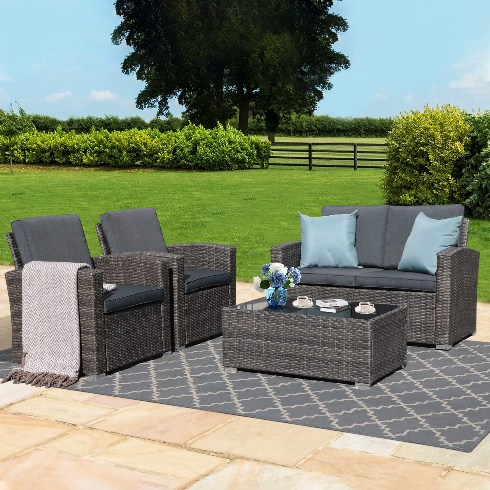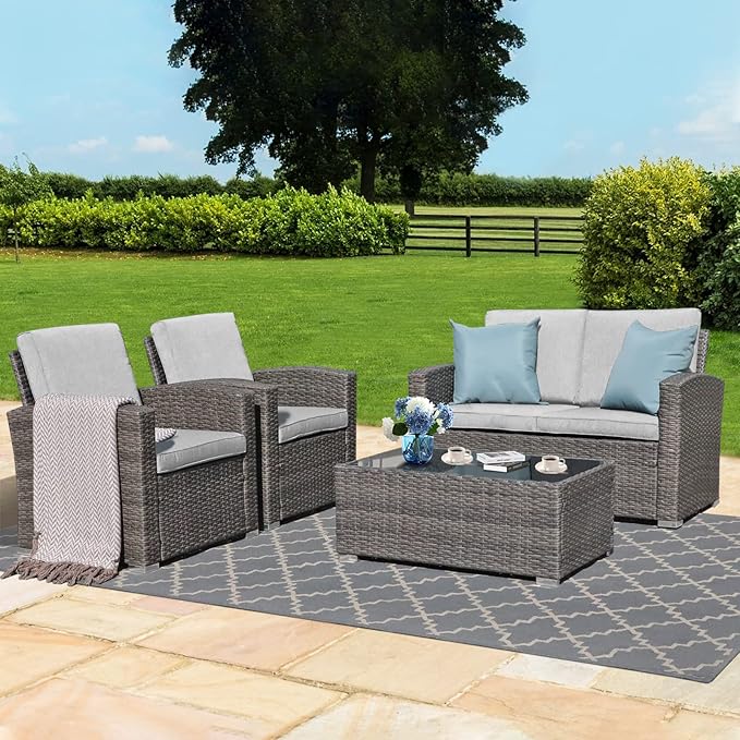 4 Piece Patio Conversation Set,All Weather Rattan Wicker Patio Furniture Set