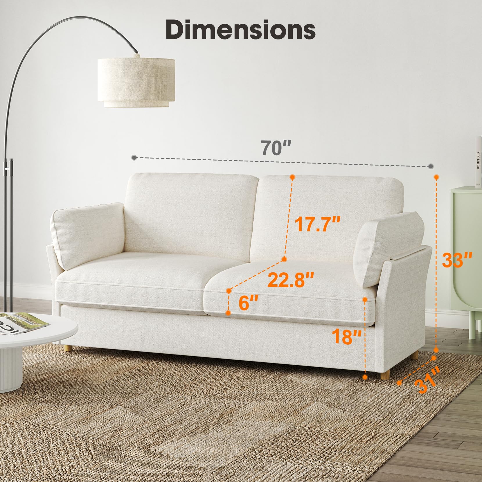 - Breathable Fabric: Upholstered in linen-like fabric which is durable, breathable, skin-friendly, tear resistant, wrinkle resistant, the Vesgantti 70 inch loveseat sofa chooses the top fabric to bring you a comfortable touch, easy care, fits all four seasons.