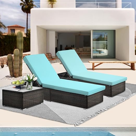 - Practical Patio Chaise Lounge Set With simple and classical design, try some new styles for your holiday time. Use it as the perfect option for indoor or outdoor space, such as lawn, poolside, backyard, garden and balcony.