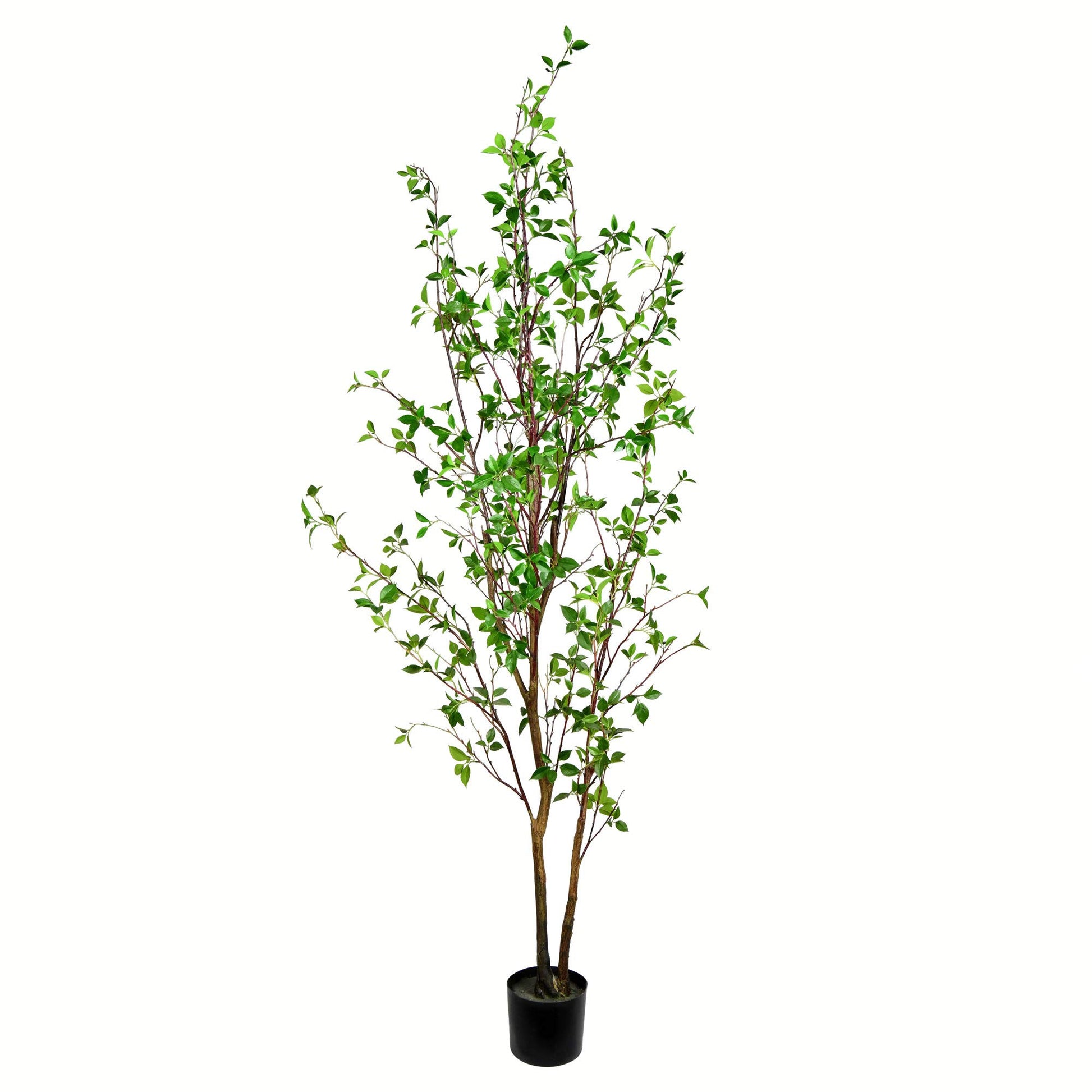 Everyday 84" Indoor Potted Baby Leaf Black Plastic Pot - Faux Indoor Greenery Decor