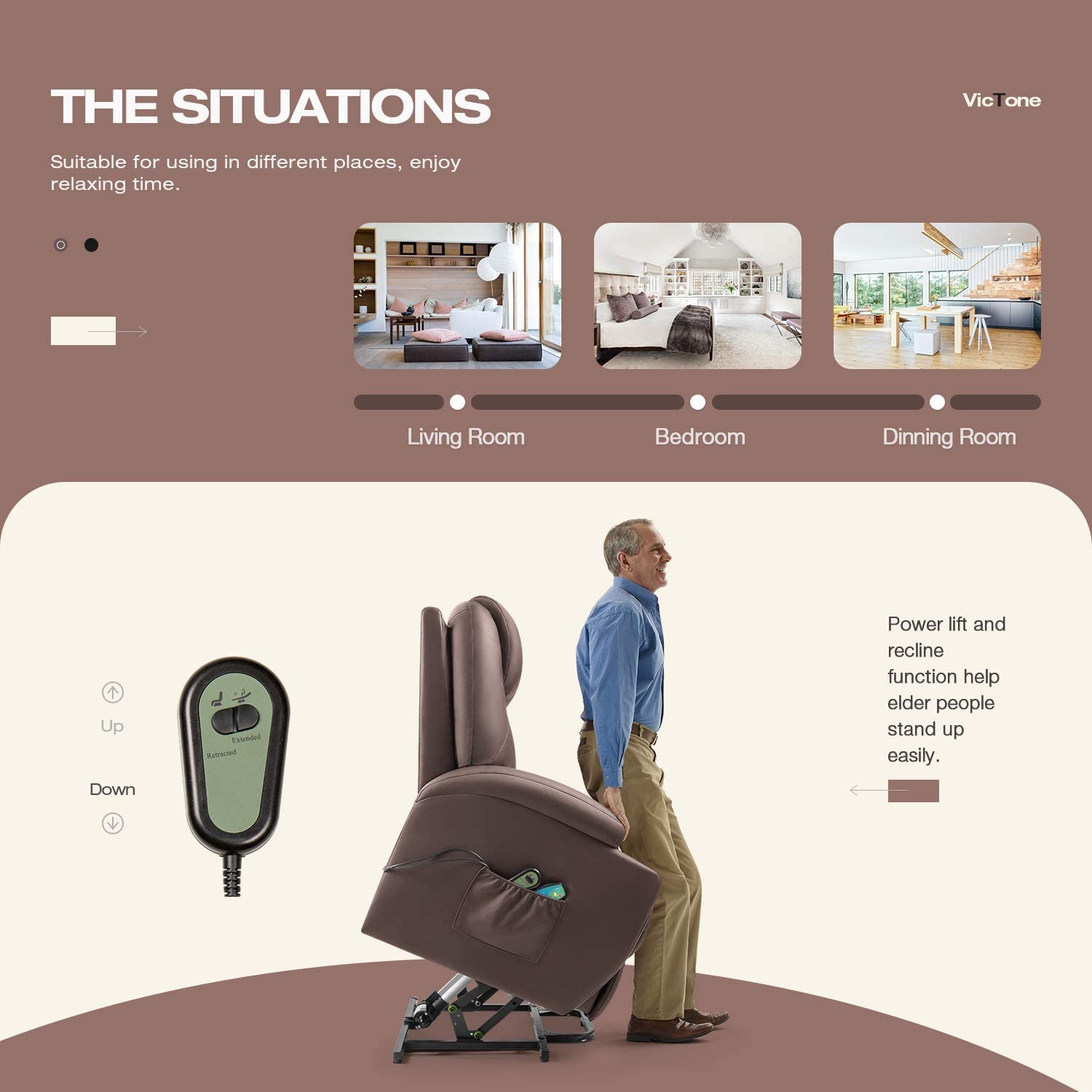 - Power Lift Assistance: Power lift and recline assist system, help the elder stand up easily. The foot rest and seat back can be adjusted at multiple angles by remote control, smoothly adjusting the position you want when watch TV, read books or take a nap.