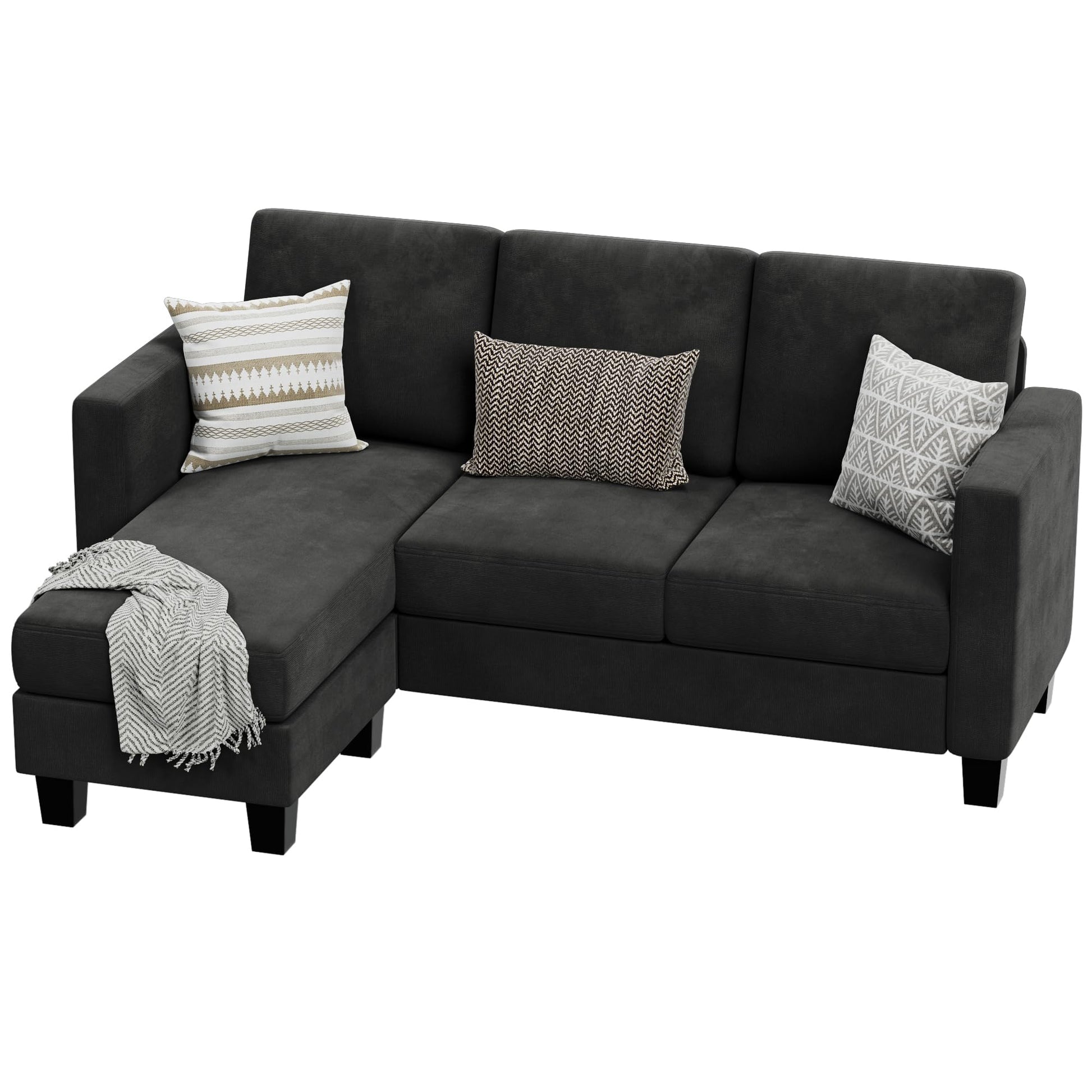 Sectional Sofa Couch 3 seat L-Shaped Sectional Sofa with Linen Fabric Ottoman Small