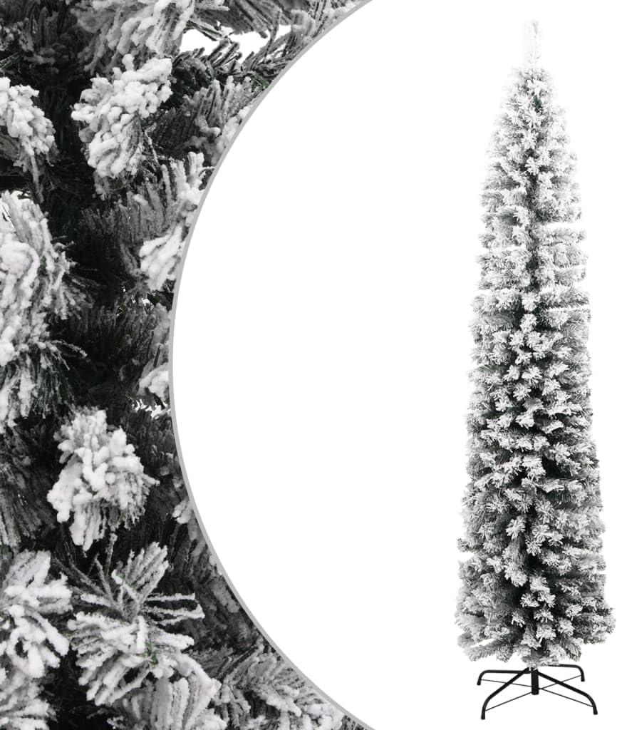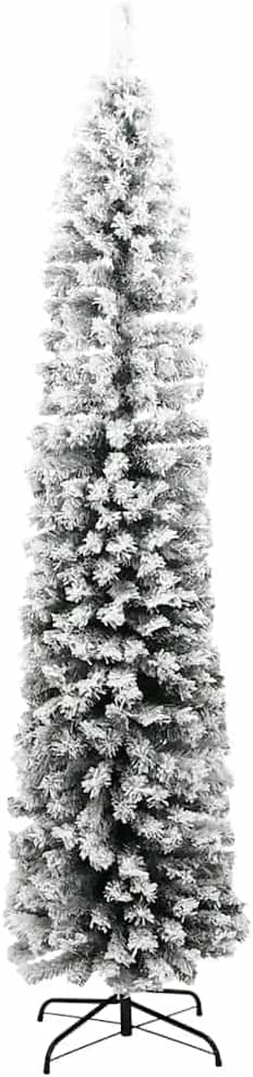 Slim Artificial 7ft Christmas Tree with Flocked Snow - Green PVC Indoor and Outdoor