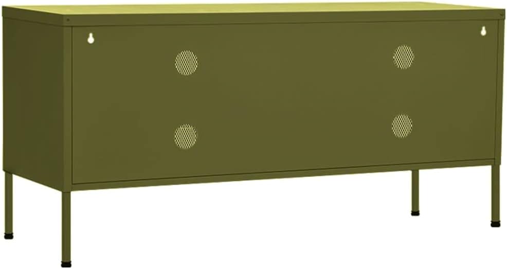- Aesthetic meets function in this TV stand; its simple lines and Olive green color attribute to an industrial style that complements any living space décor