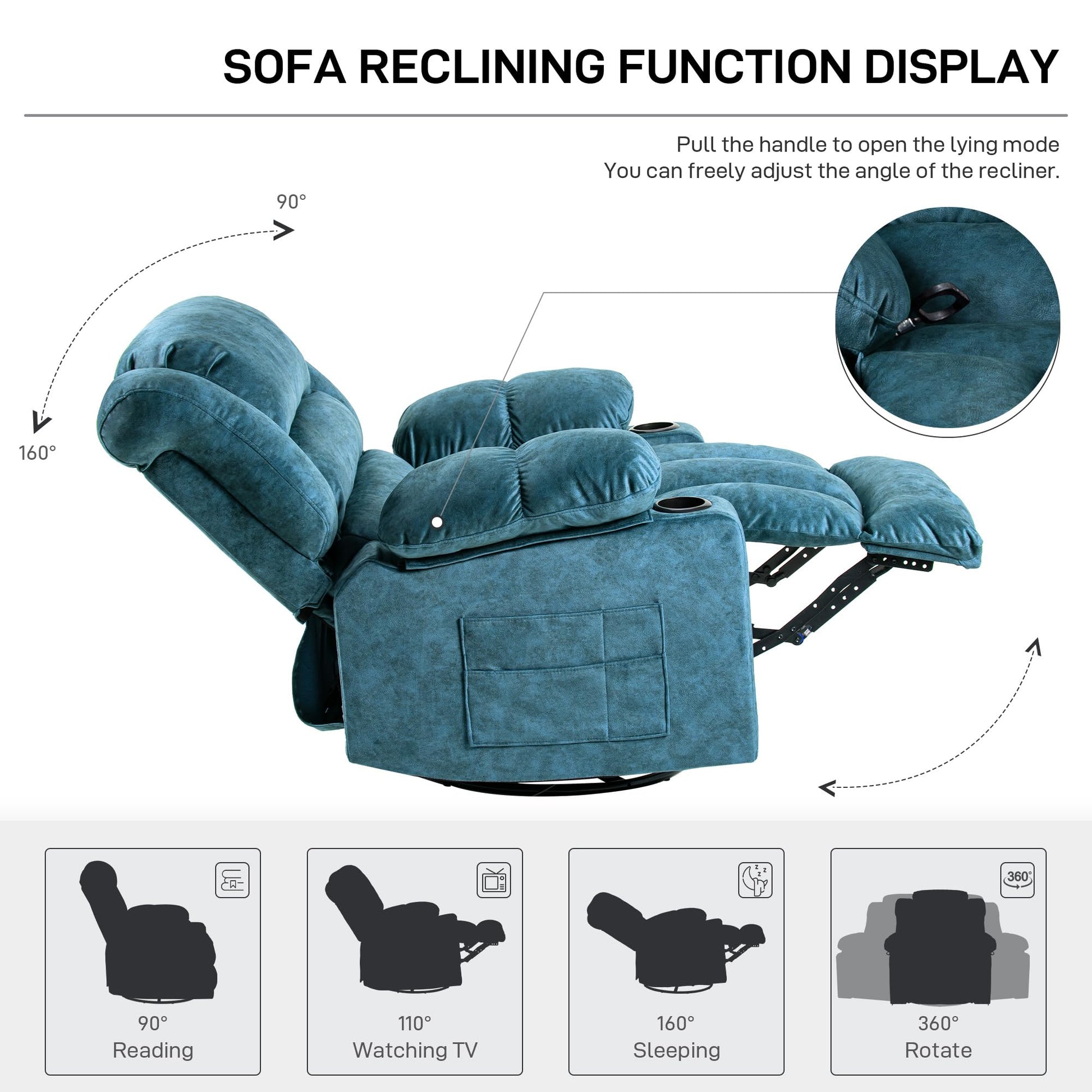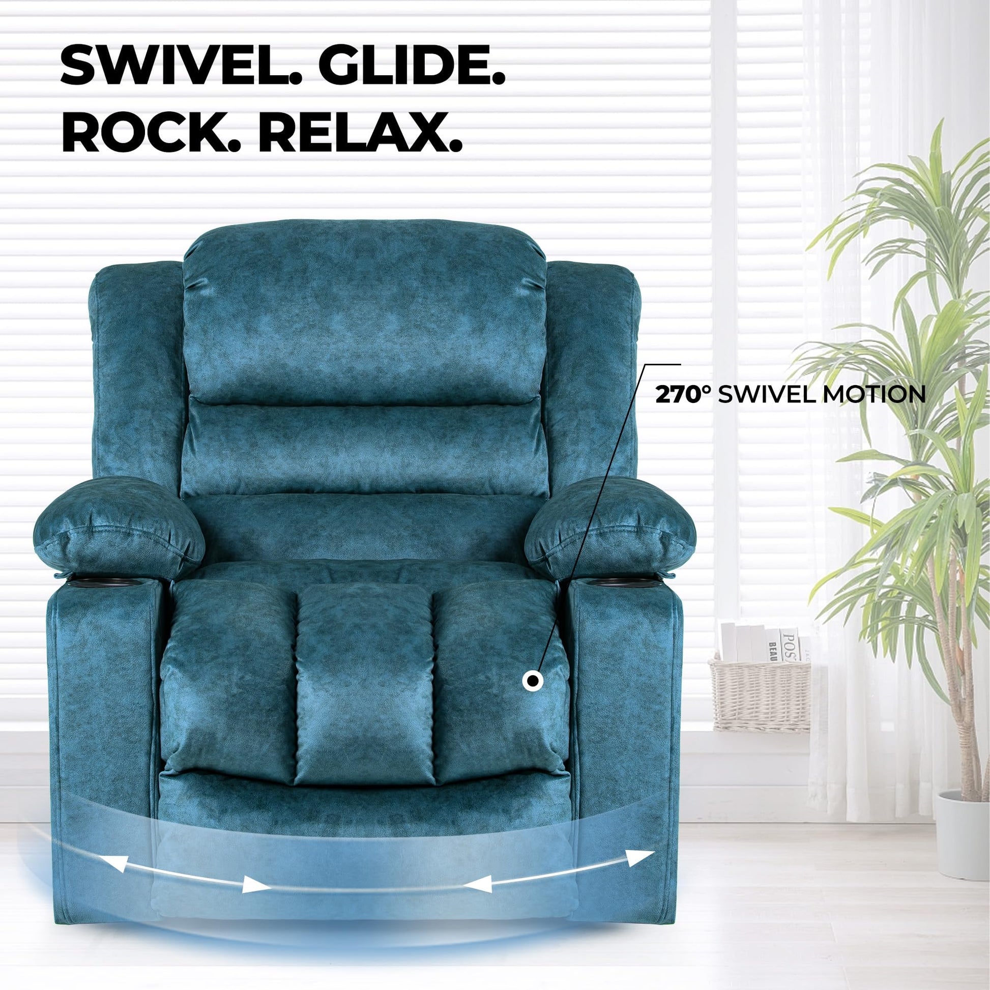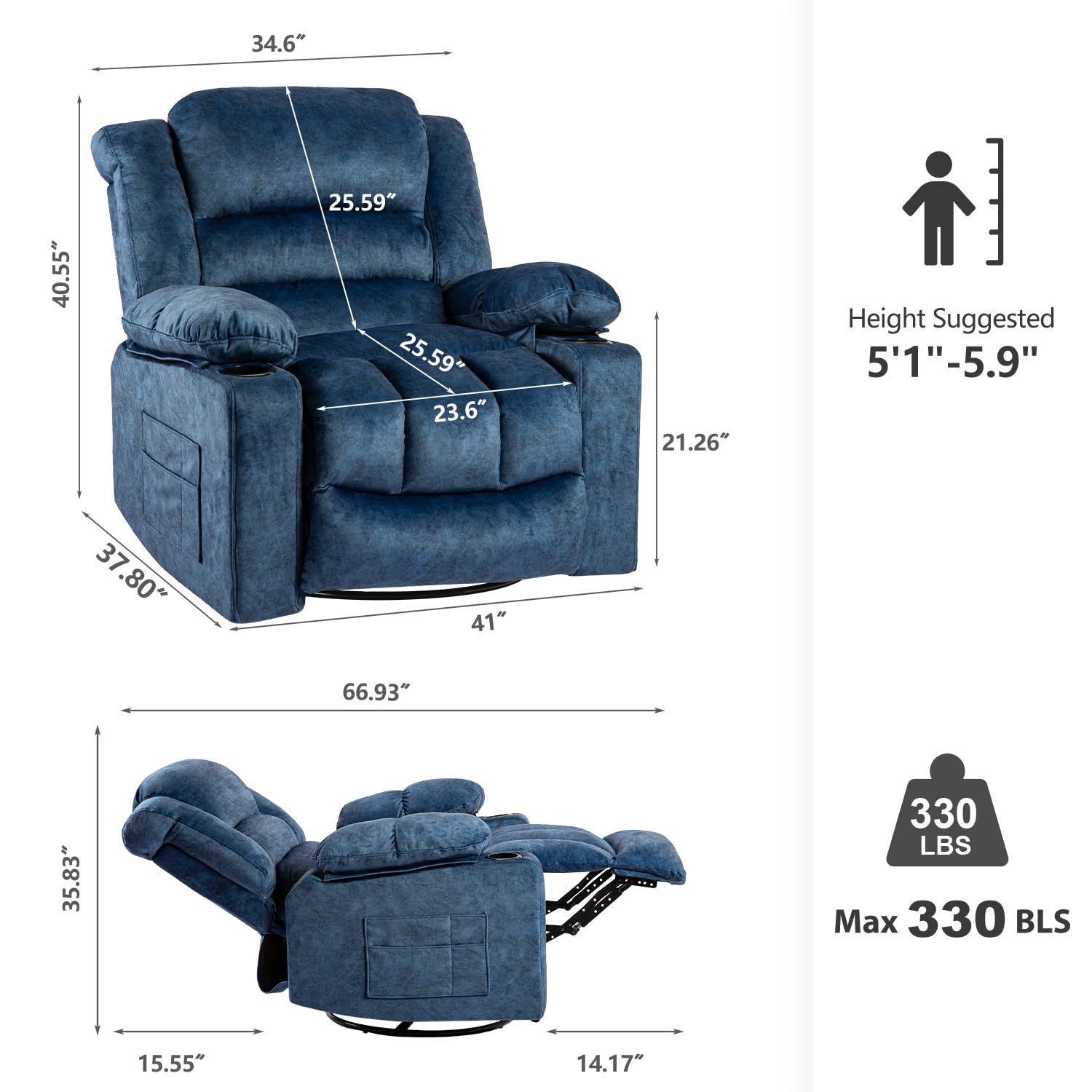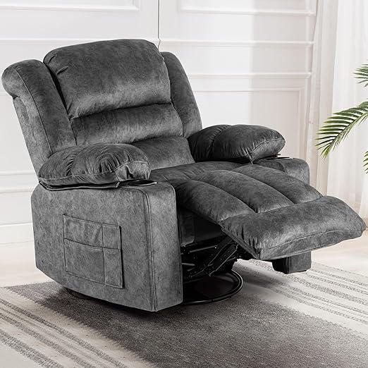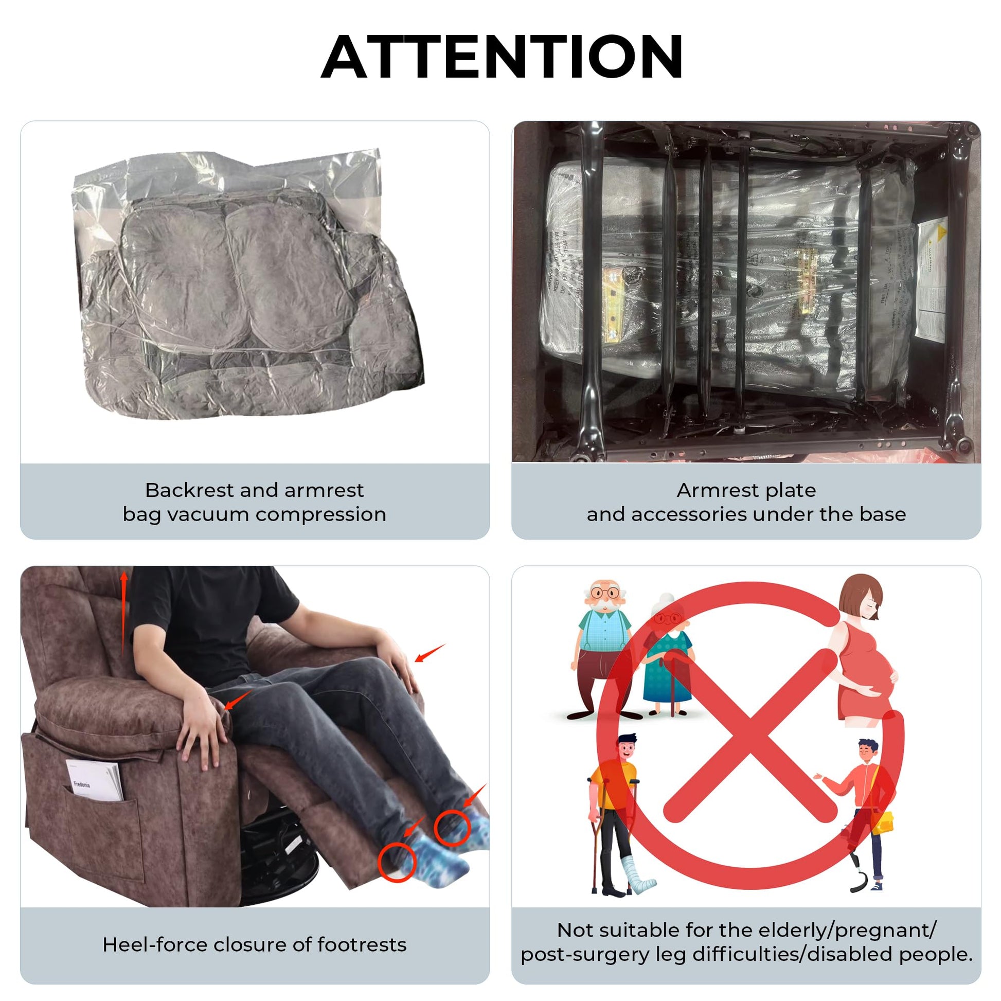 - ROCKING & RECLINING - The footrest of this swivel recliner is not electrically unfolded, closing the footrest will encounter some resistance, so it is not suitable for the elderly/pregnant women/disabled/legged people. This rocking recliner also swivels 360 degrees.