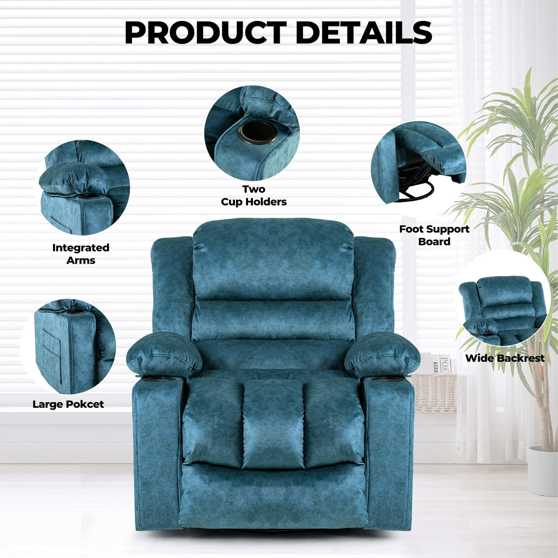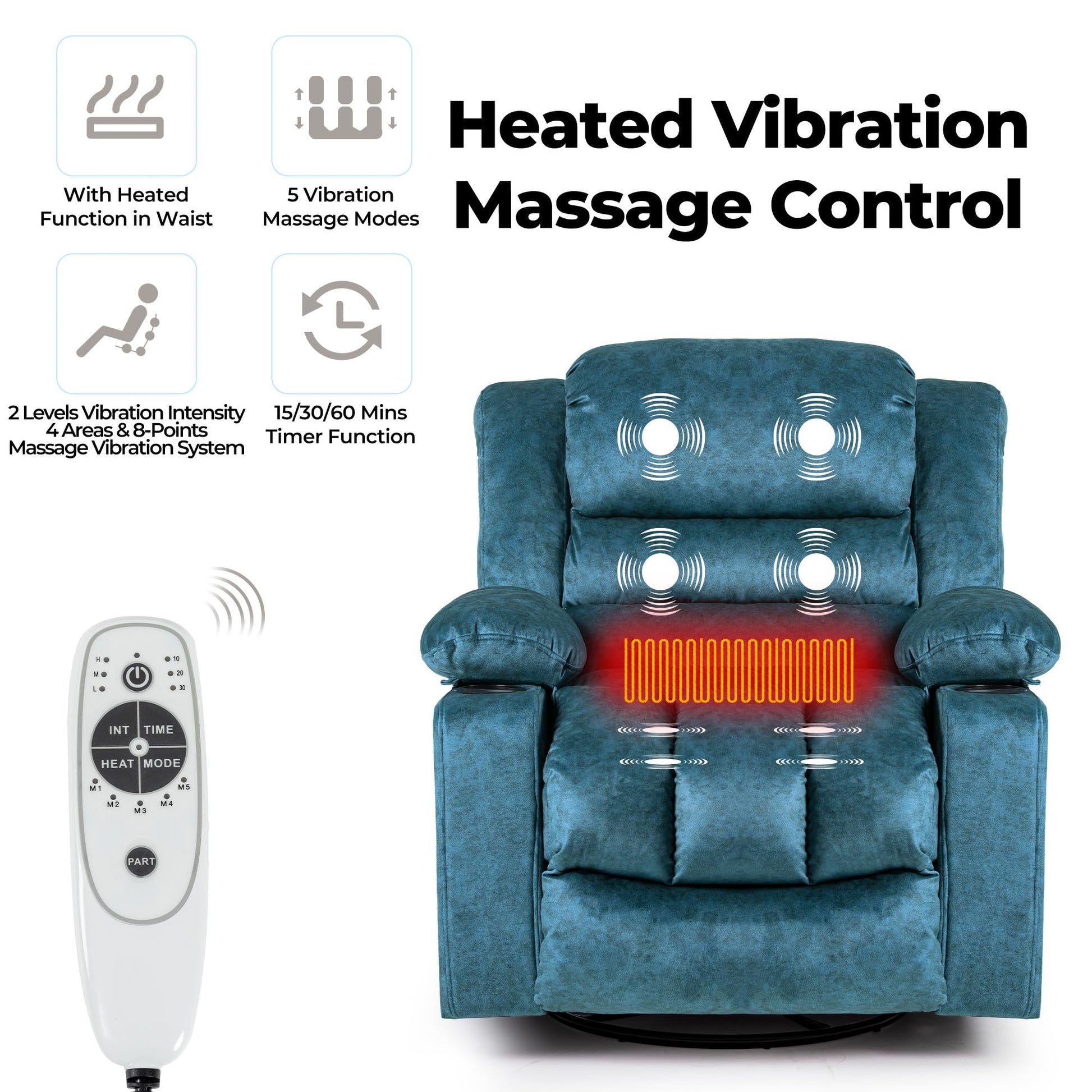 Recliner Chair Massage Rocker Swivel with Heated Modern Ergonomic 360 Degree Single