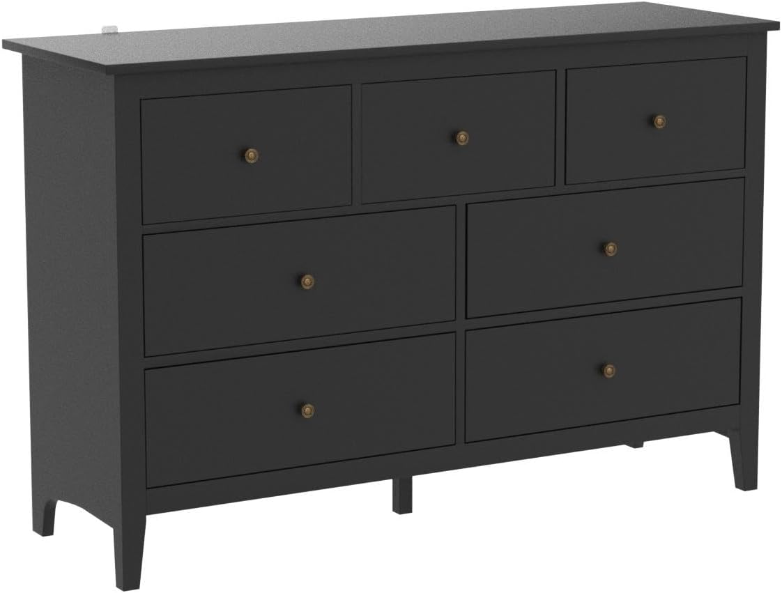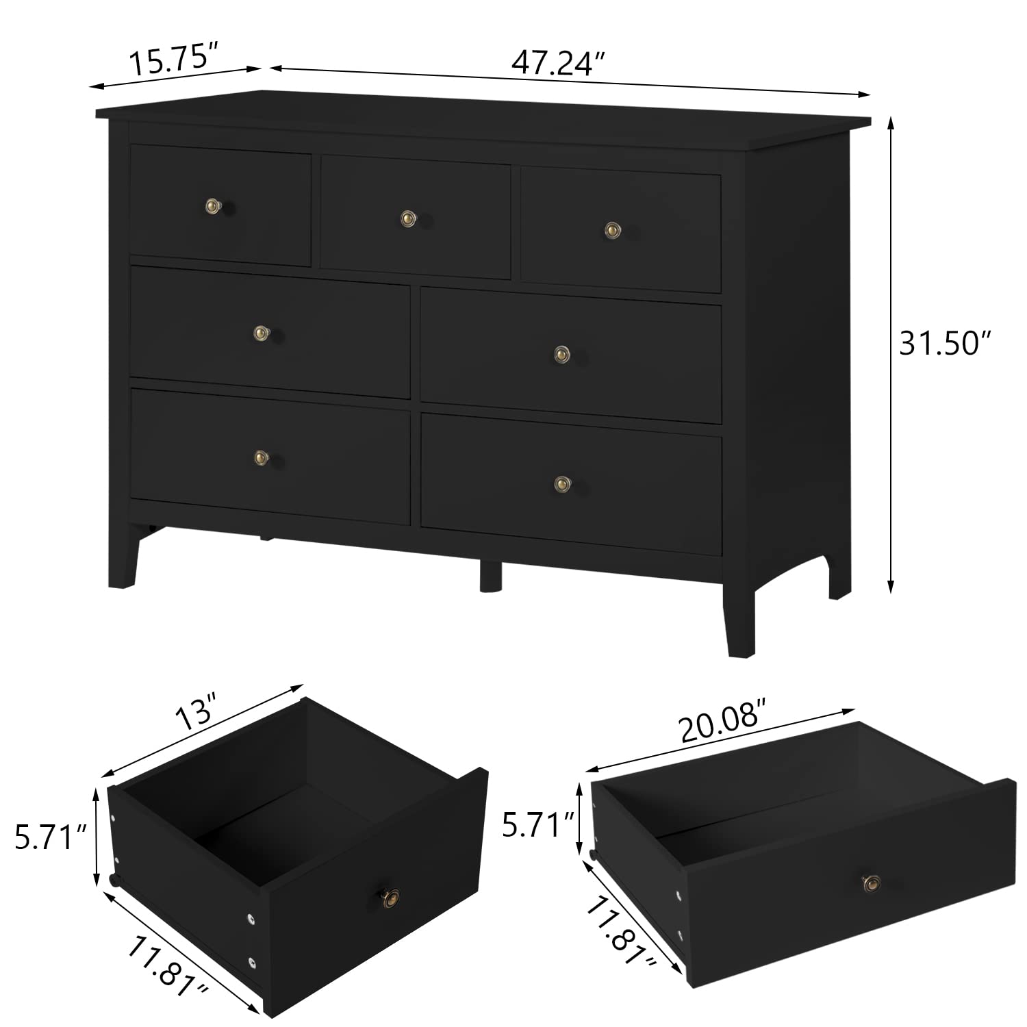 Black Dresser - Modern Dresser for Bedroom, Wooden 7 Drawer Dresser