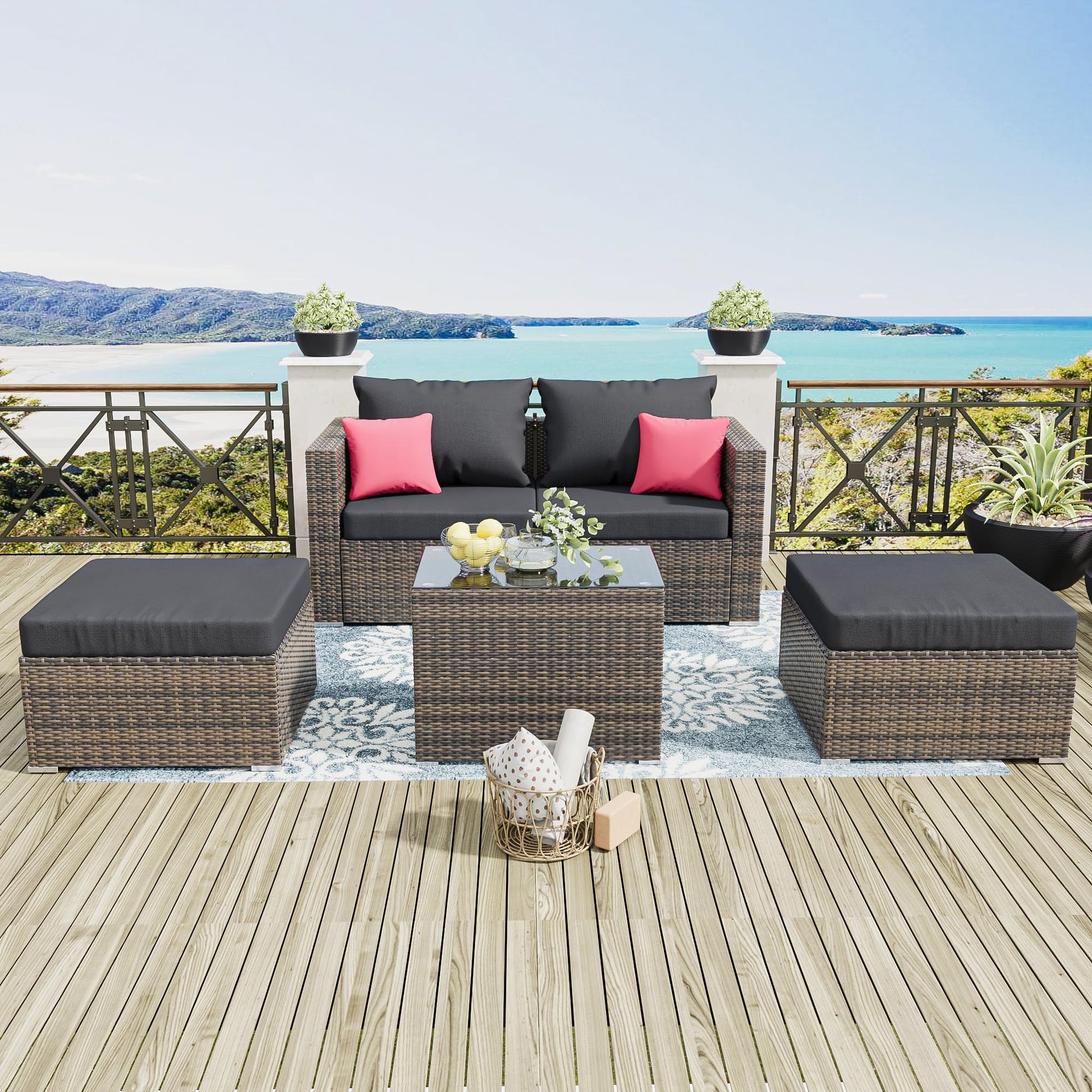 - Easy to Maintain:The patio conversation furniture set features a waterproof wicker and tempered glass top for the coffee table, easy to wipe clean. Plus, the removable cushion cover makes cleaning a breeze, keeping your set looking new for years to come.