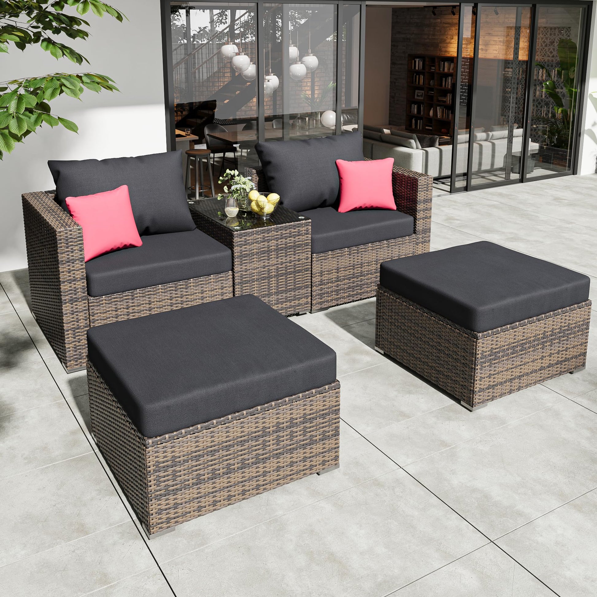 5 Pieces Outdoor Patio Sectional Furniture Set with Ottomans