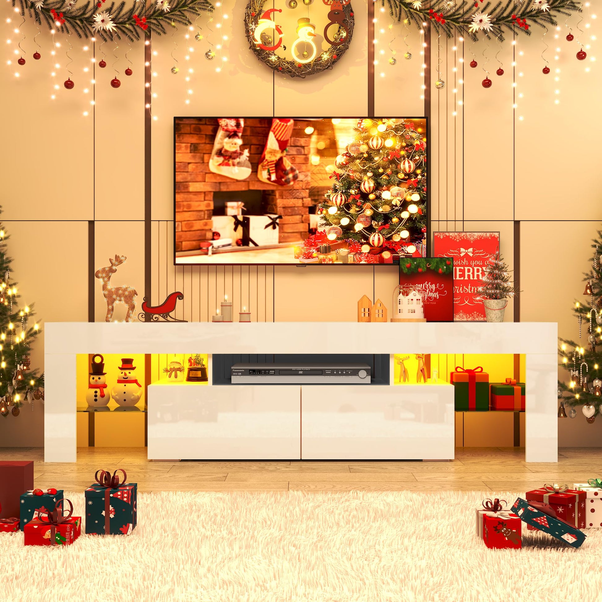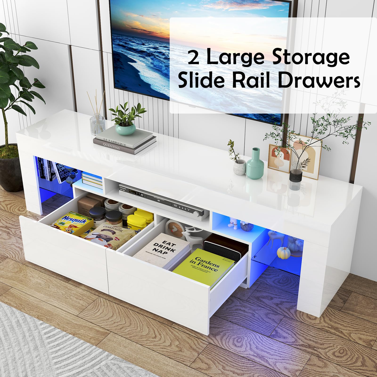 LED TV White Stand for 55/60/65inch TV,Modern Entertainment Center with 2 Storage