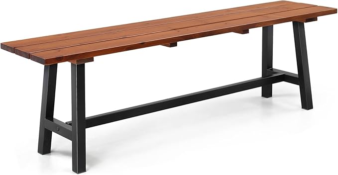 - Natural Fir Wood Seat: Crafted from 100% solid fir wood, this backless bench boasts natural weather resistance. Enhanced stability is achieved through thickened metal legs and reinforced underside wood strips