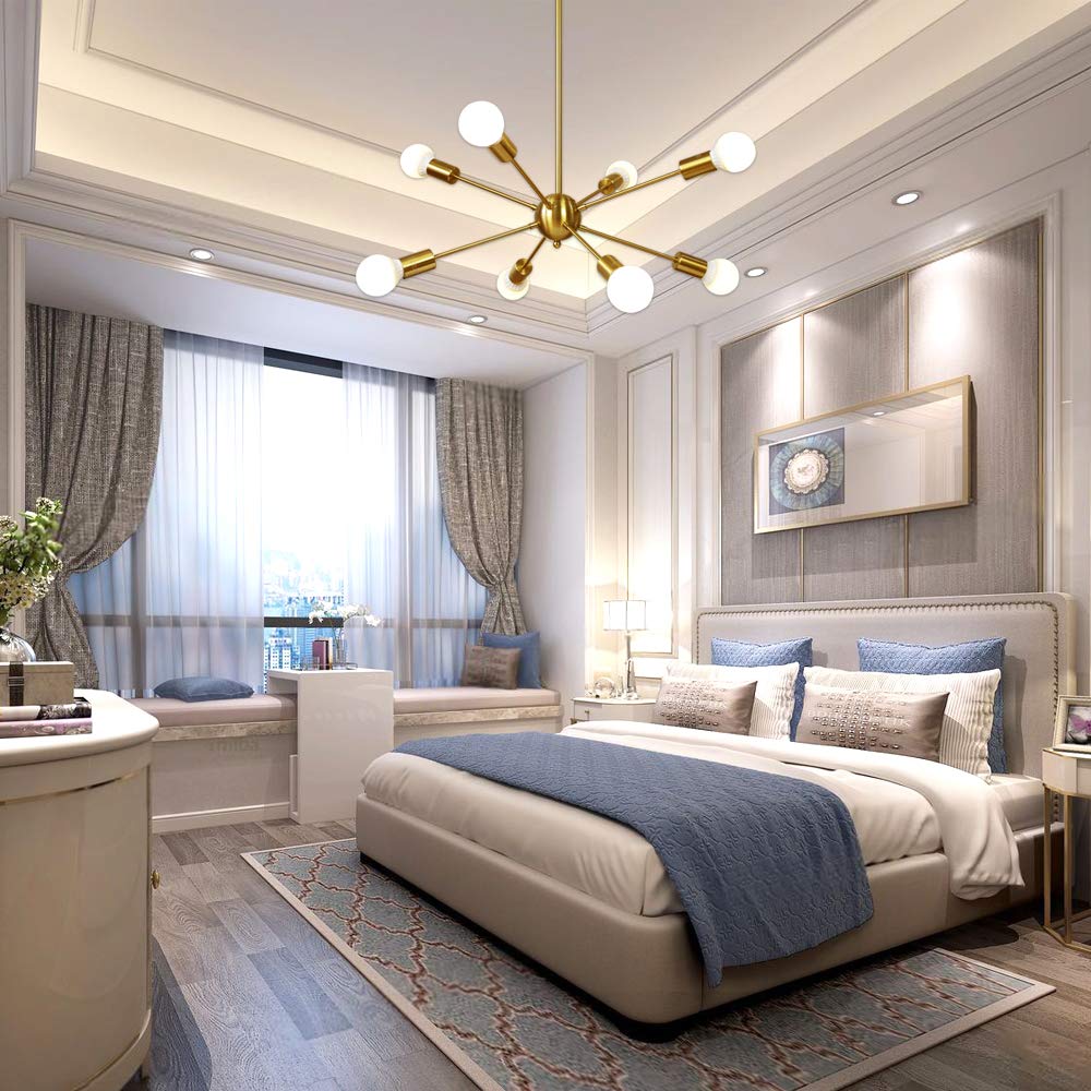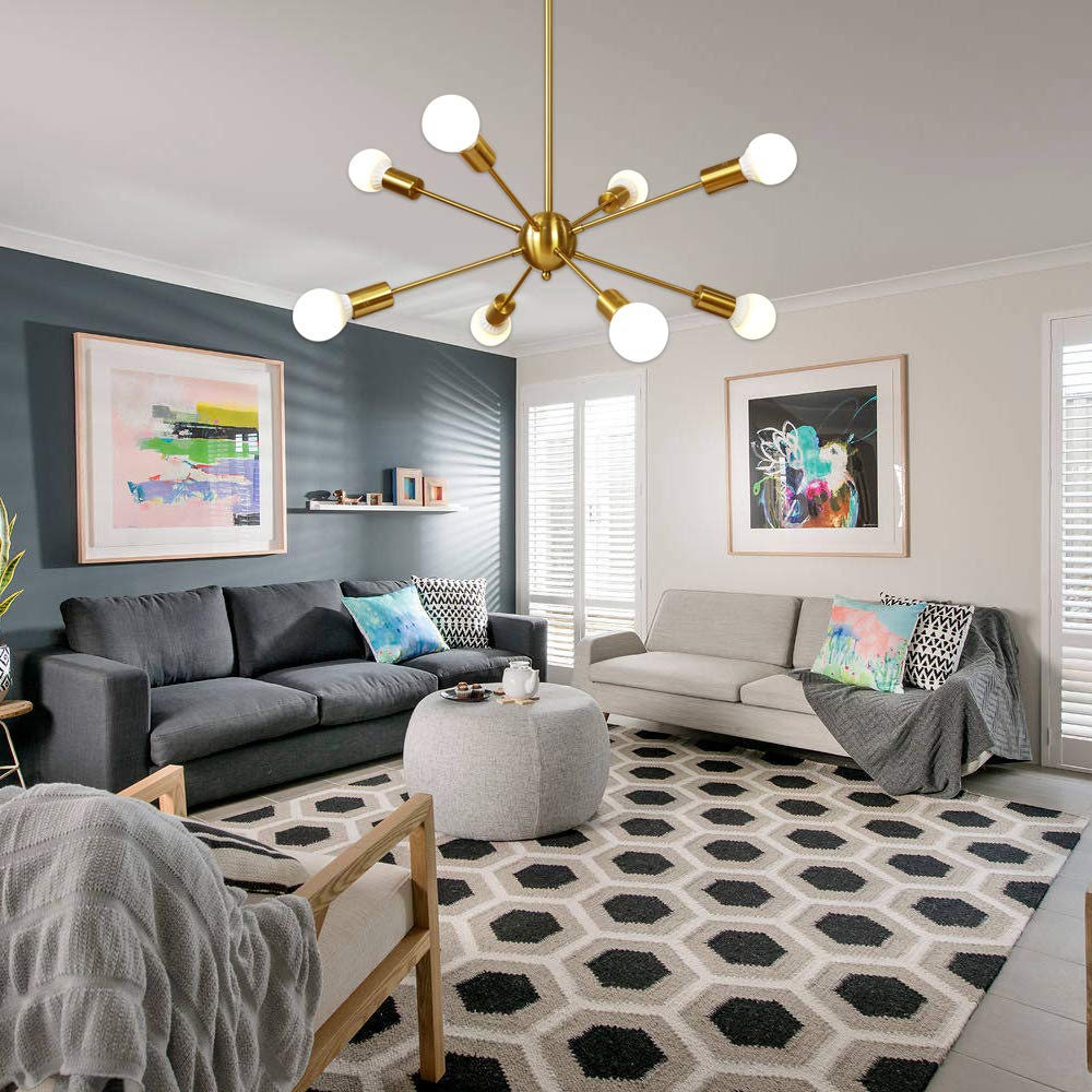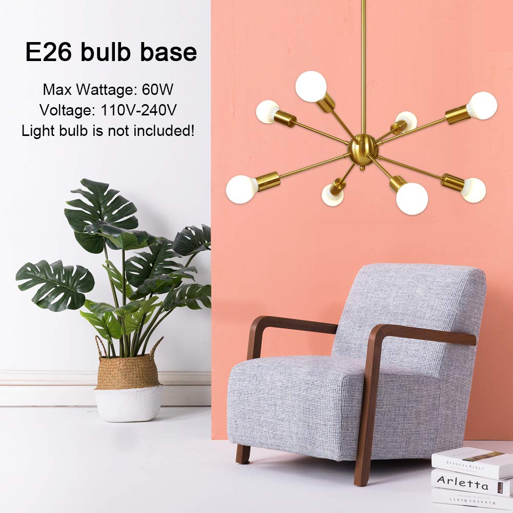 Sputnik Chandelier 8 Light Brushed Brass Pendant Lighting Gold Mid Century Modern