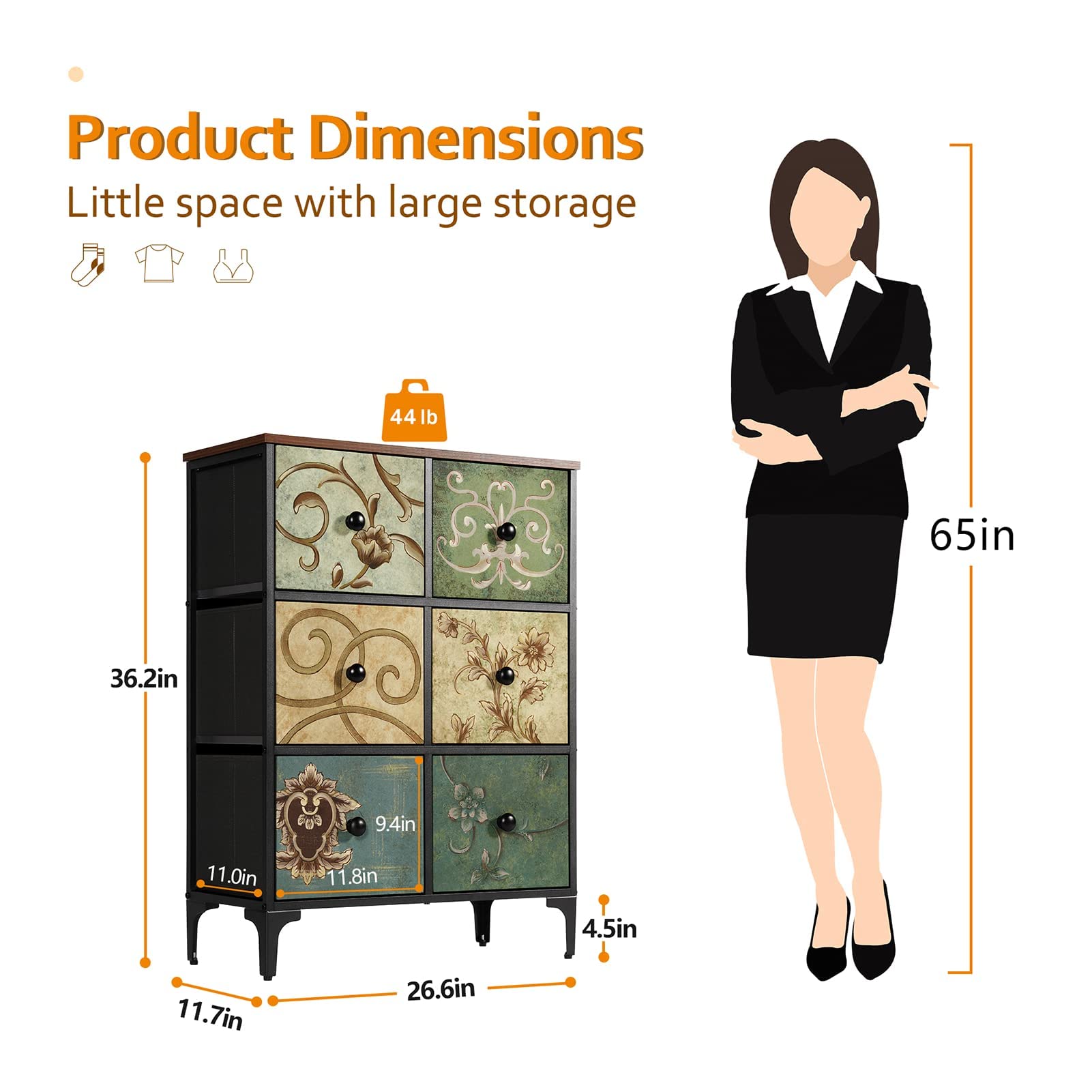 Vintage 6-Drawer Dresser | Tall Storage Chest for Bedroom & Living Room