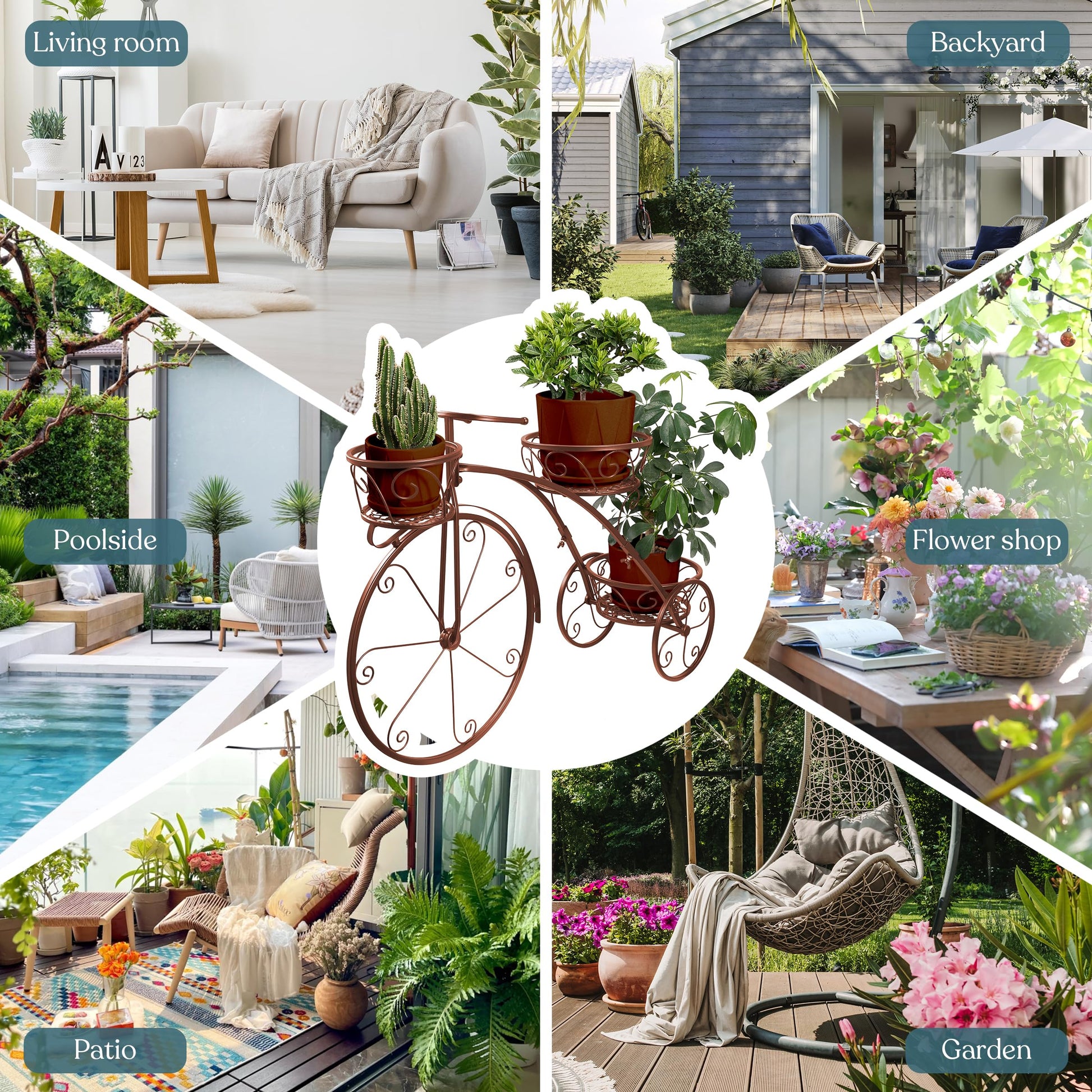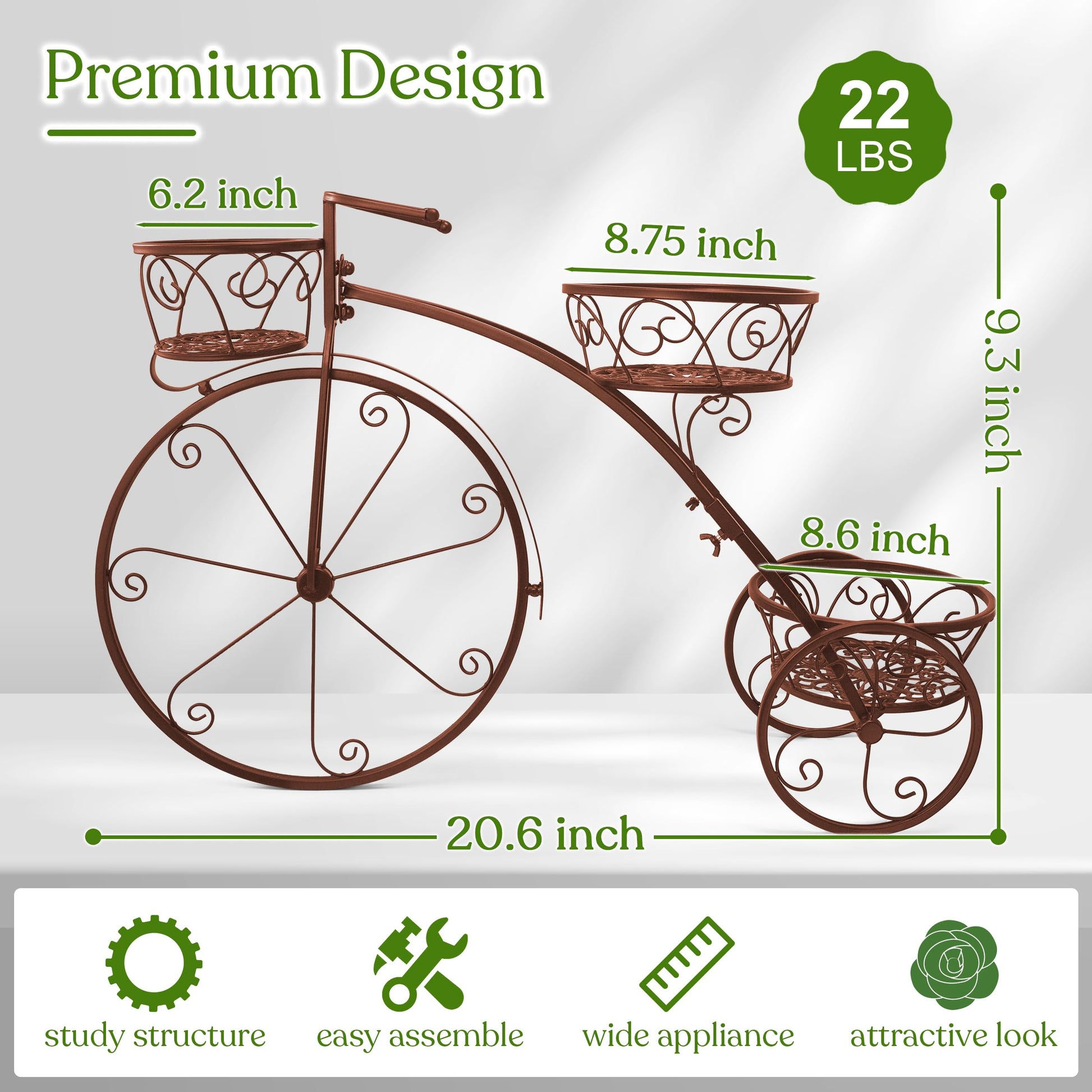 Enhance your garden or home décor with this elegant tricycle plant stand. Designed to showcase flowers and plants stylishly while adding a vintage touch to any space.