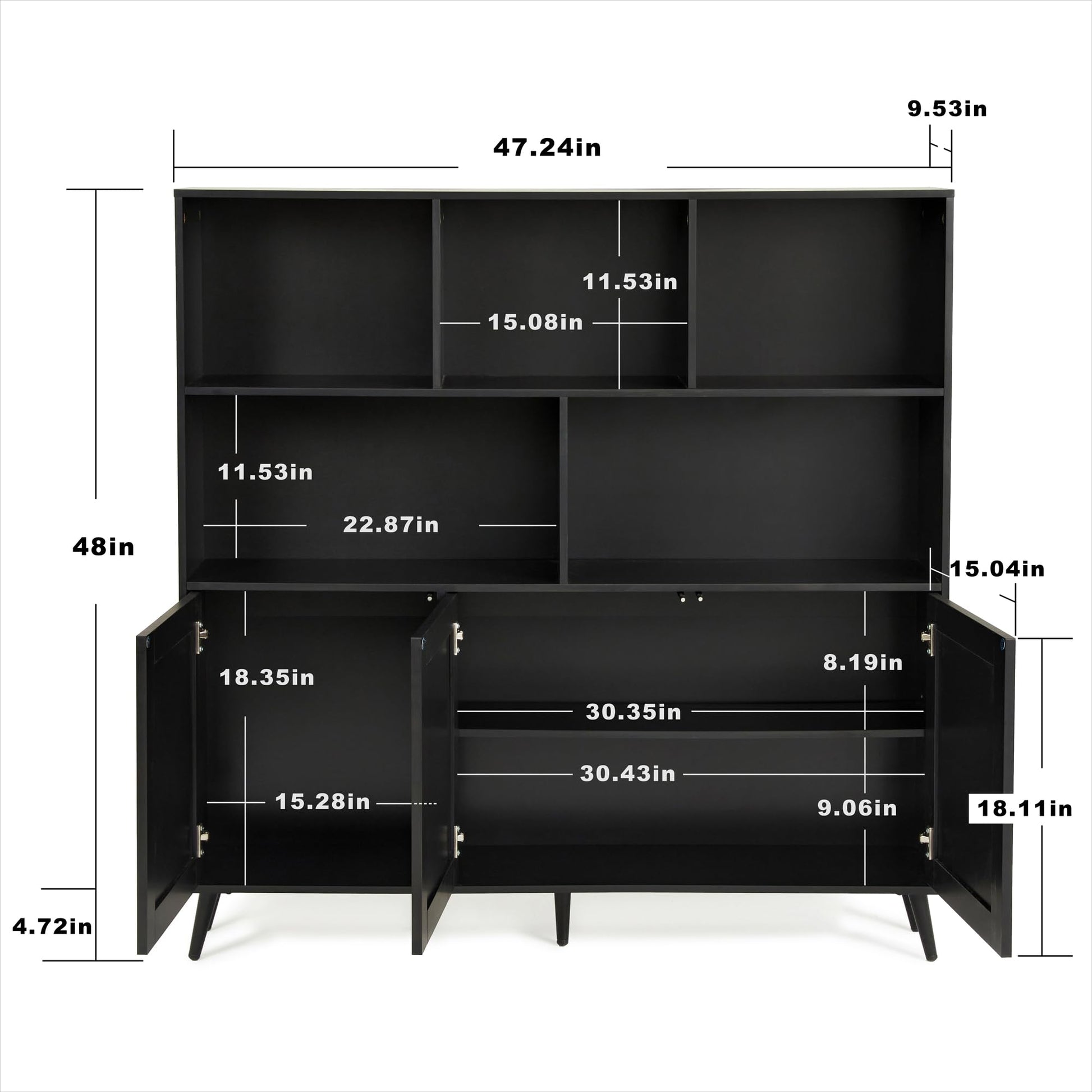 Doors, 47.24 inch Large Book Shelf with Storage, Adjustable Shelves Bookshelf, 11.9"