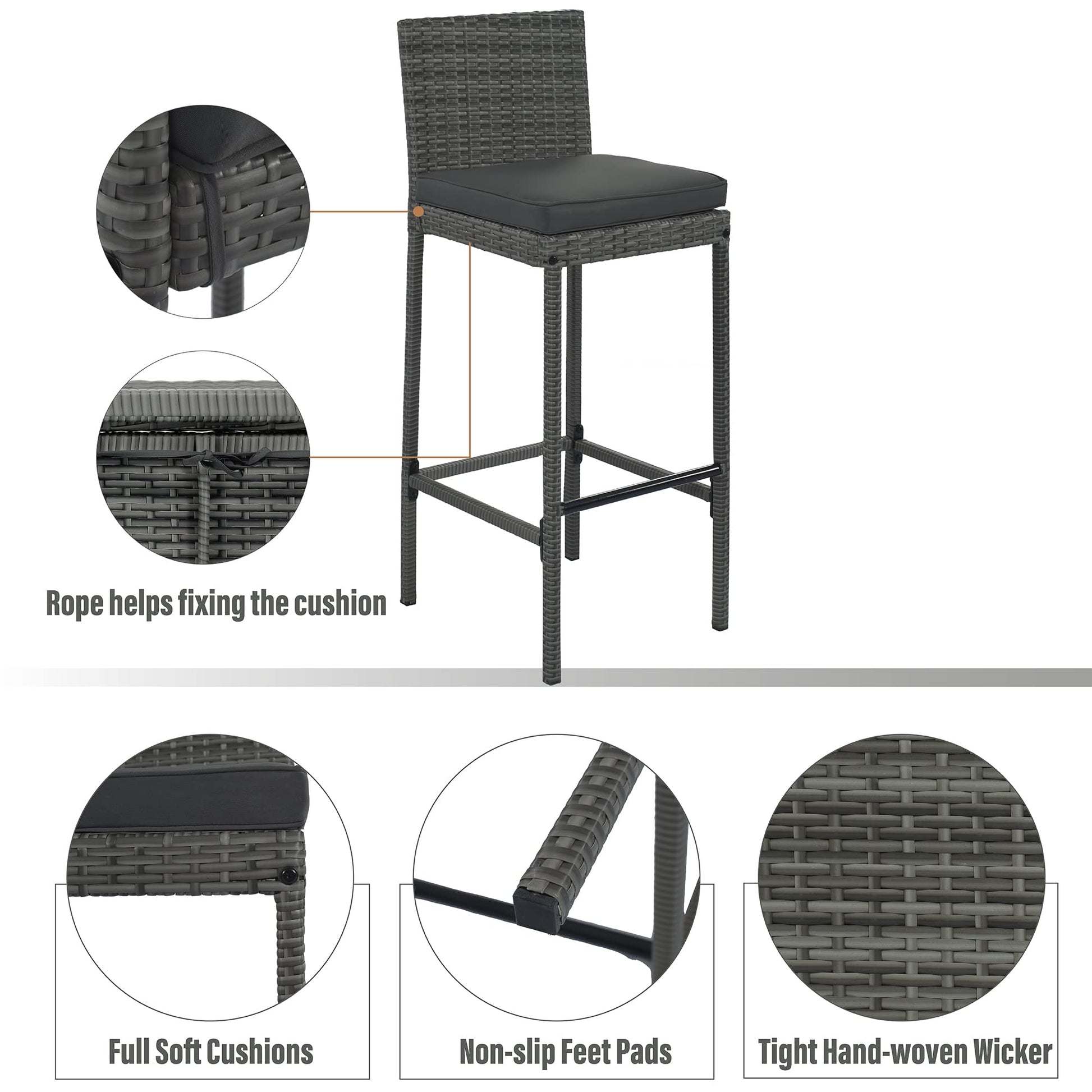 VnndeNest 5-Pieces Patio Furniture Set, Outdoor Wicker Bar Set with 4 Stools and Table, Space Saving Wicker Patio Bars Set Outdoor Furniture Bistro Set for Backyards, Porches, Gardens, Poolside, Grey
