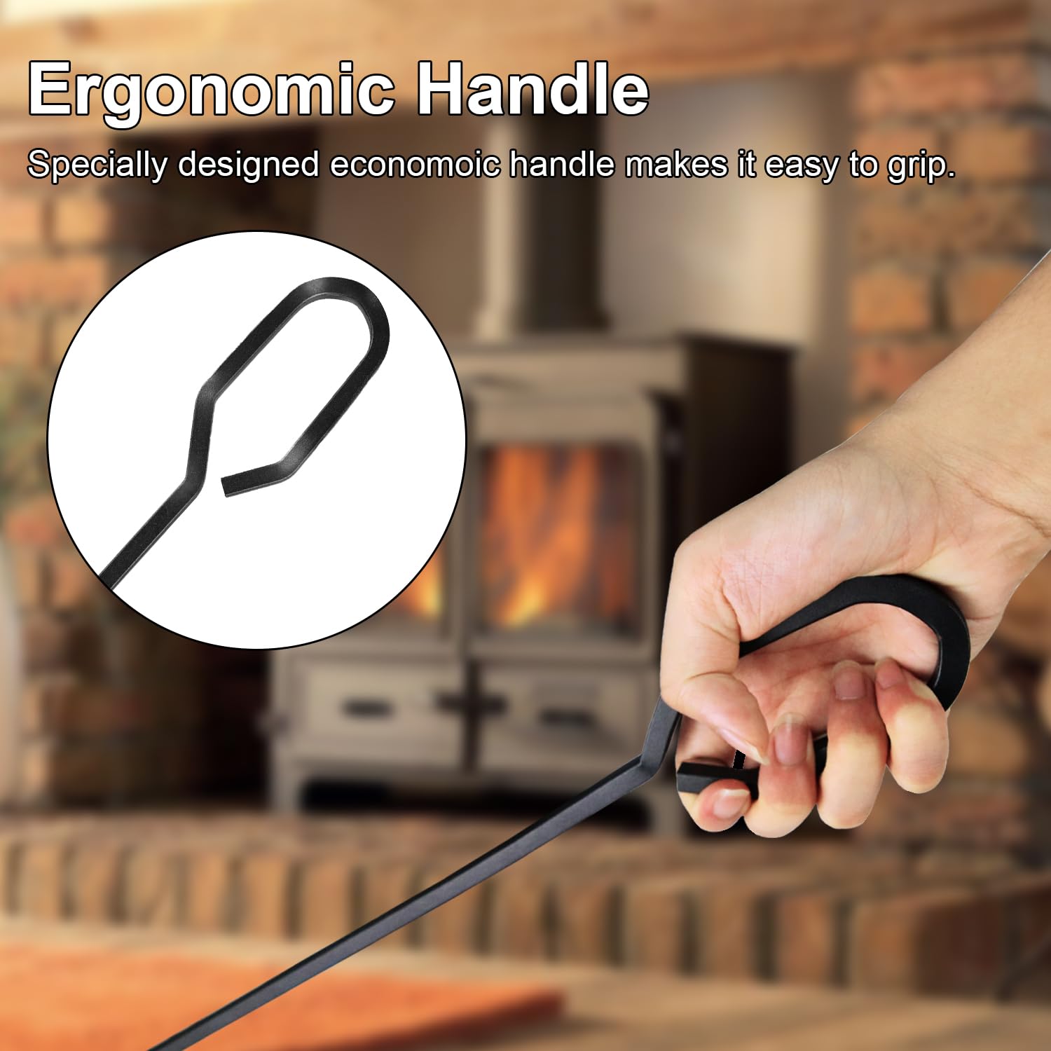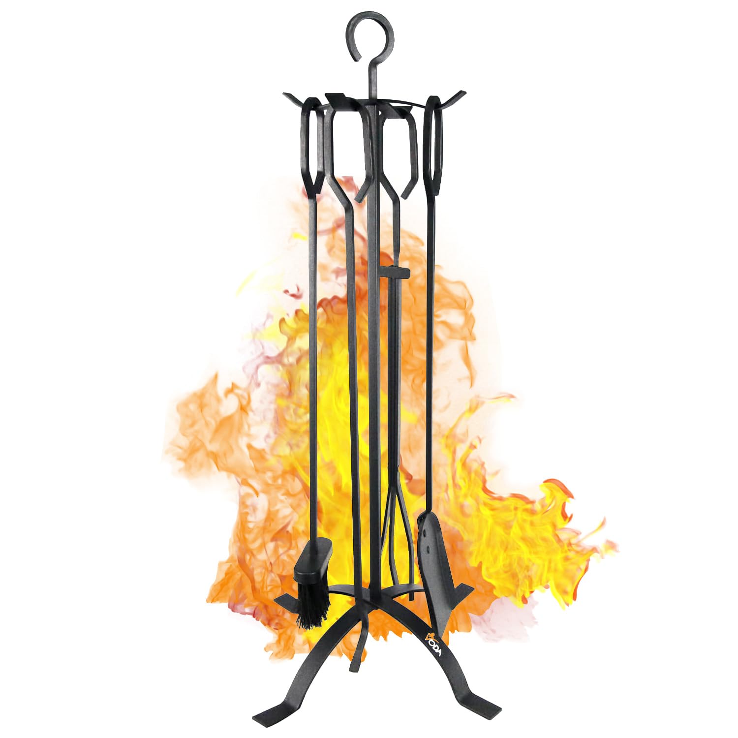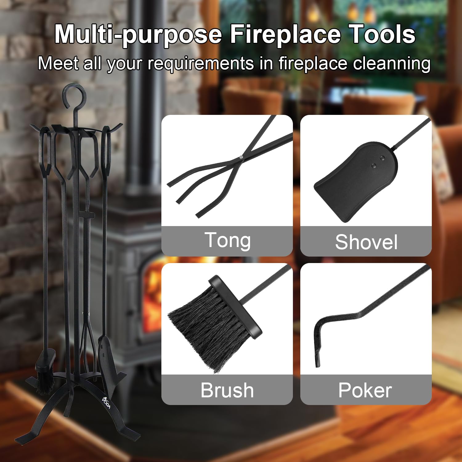 - Multi-Function Tools Set: This black fireplace accessories set, fire place decoration toolset includes sturdy stand with heavy base, brush broom, antique shovel, tong, fire pit poker. Each of them has a firm handle with an orb at the top. This sturdy fireplace tools set can serve your indoor/outdoor fireplace, stone stove, or wood stove for a long time