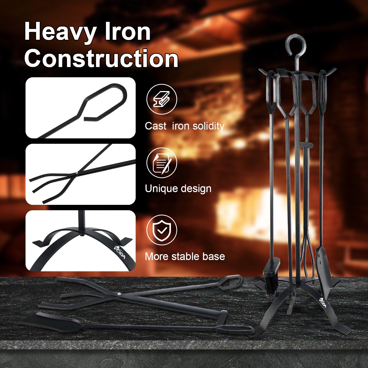Fireplace Tools Set, 5-Piece Cast Iron 30.5" Fire Place Set Tools Indoor Fireside Accessories